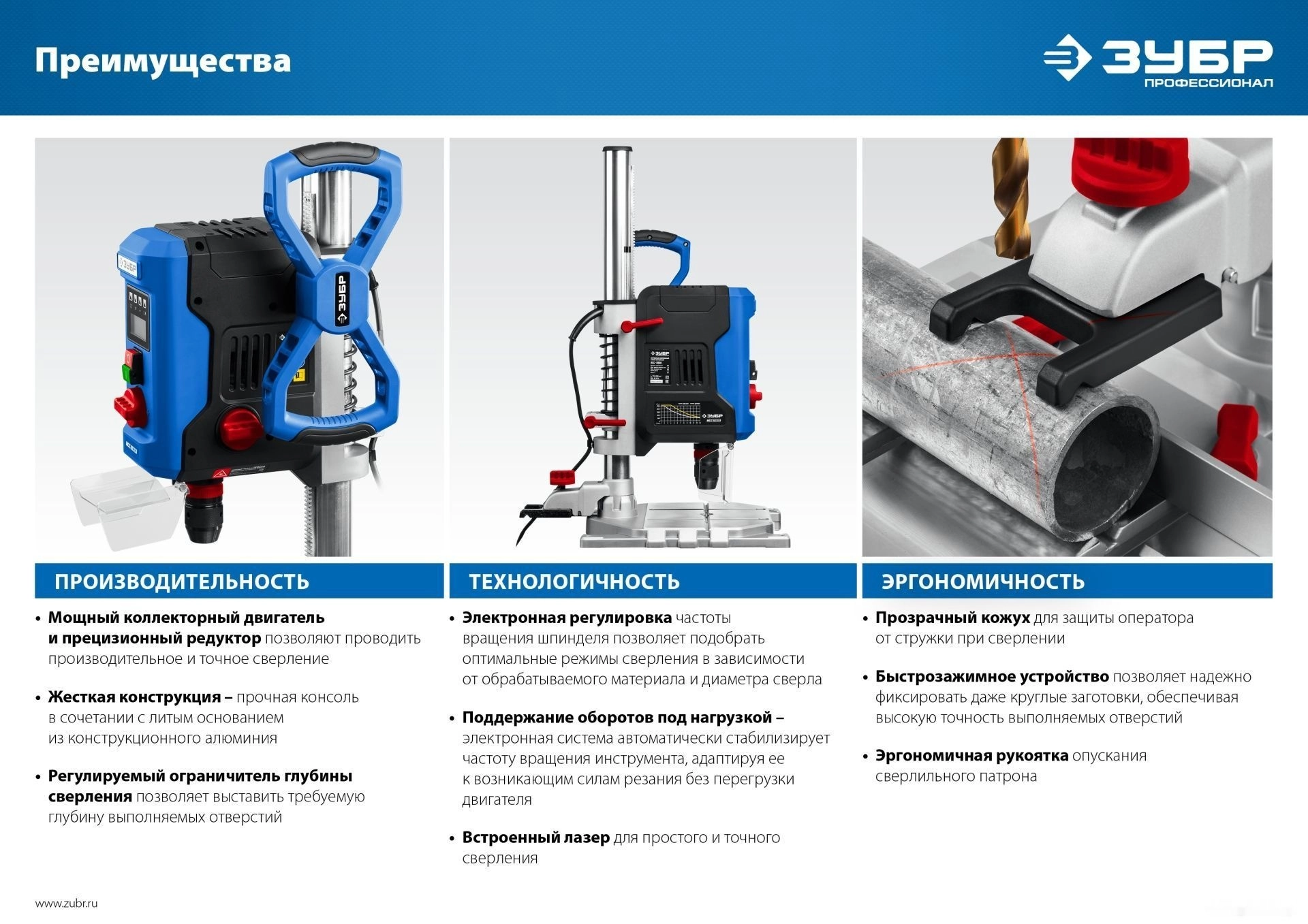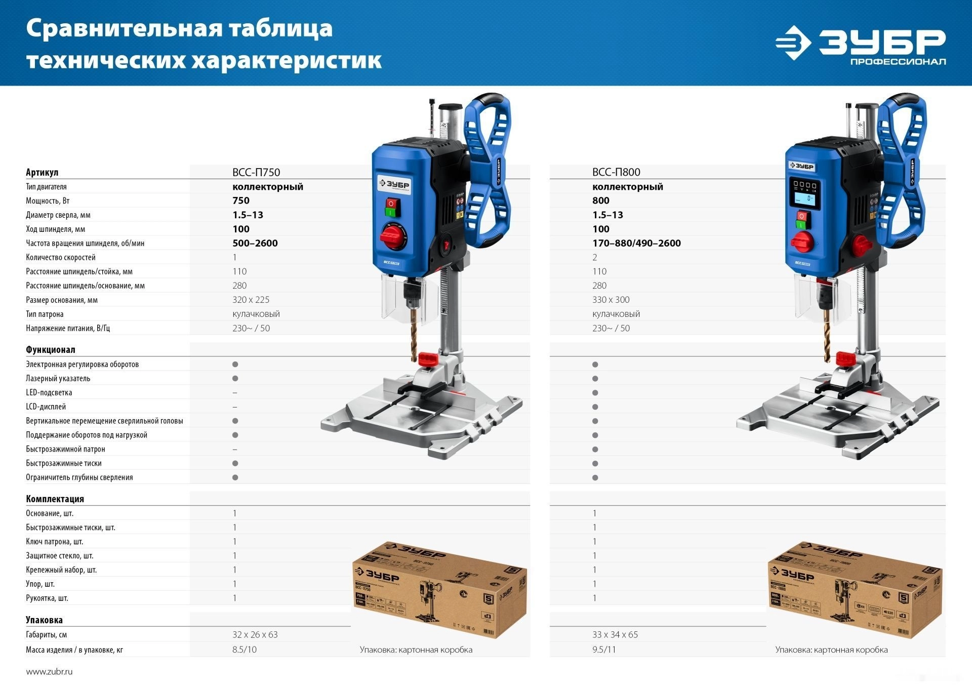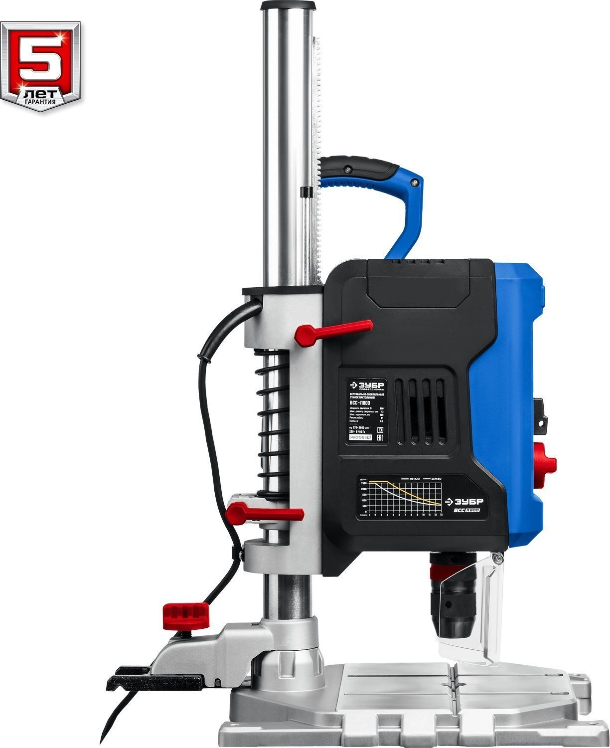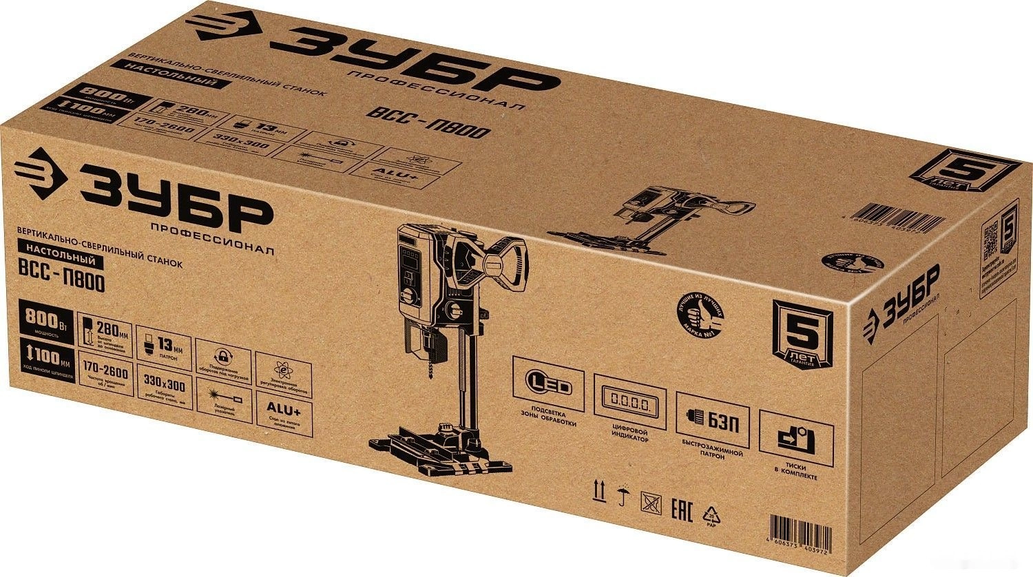ХарактеристикиАртикул ВСС-П800Бренды ЗубрСтрана производства КитайТип сверлильный станокПотребляемая мощность 800Напряжение 220Вес 9.5Мощность 800Материал обработки дерево, металлЧисло скоростей 2Ширина платформы 300Глубина платформы 330Подсветка НетОхлаждение НетЛазерный маркер ДаПылесборник НетОписание товара обновлено 08.12.2025 13:47:41Станок сверлильный ЗУБР ВСС-П800, предназначен для сверления отверстий в заготовках из различных материалов. Электронный дисплей позволяет считывать информацию о текущей скорости и глубине сверления во время эксплуатации. Быстрозажимные тиски позволяют надёжно фиксировать даже круглые заготовки, обеспечивая высокую точность выполняемых отверстий. Лазерный указатель точно указывает точку вхождения сверла в материал, обеспечивая быстрое получение точного результата. LED подсветка рабочей зоны. Двухступенчатый редуктор позволяет подобрать оптимальные режимы для обрабатываемого материала.Производитель: Крафтул И/Е Гмбх, Альтер Поствег Штр., Лоенинген, Германия