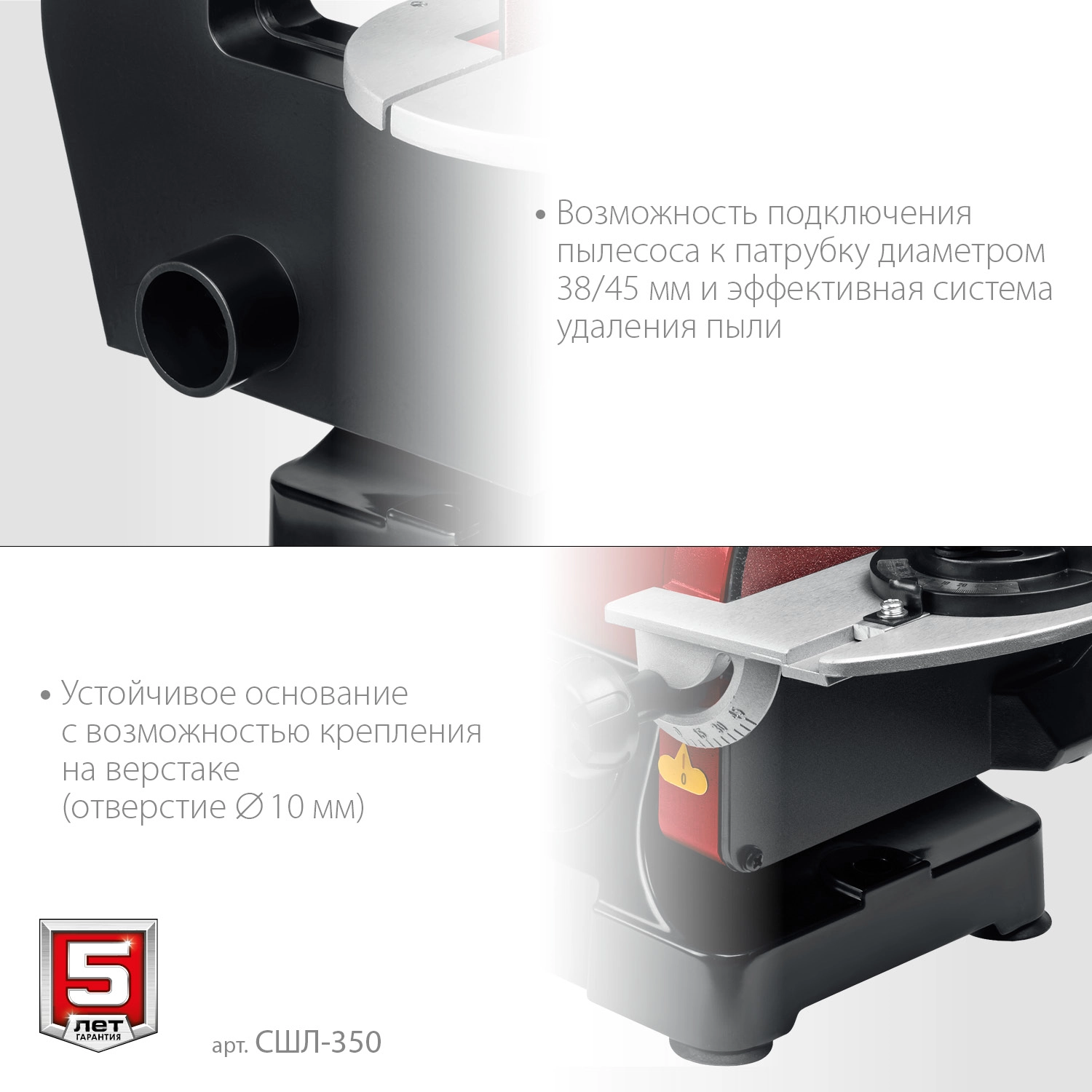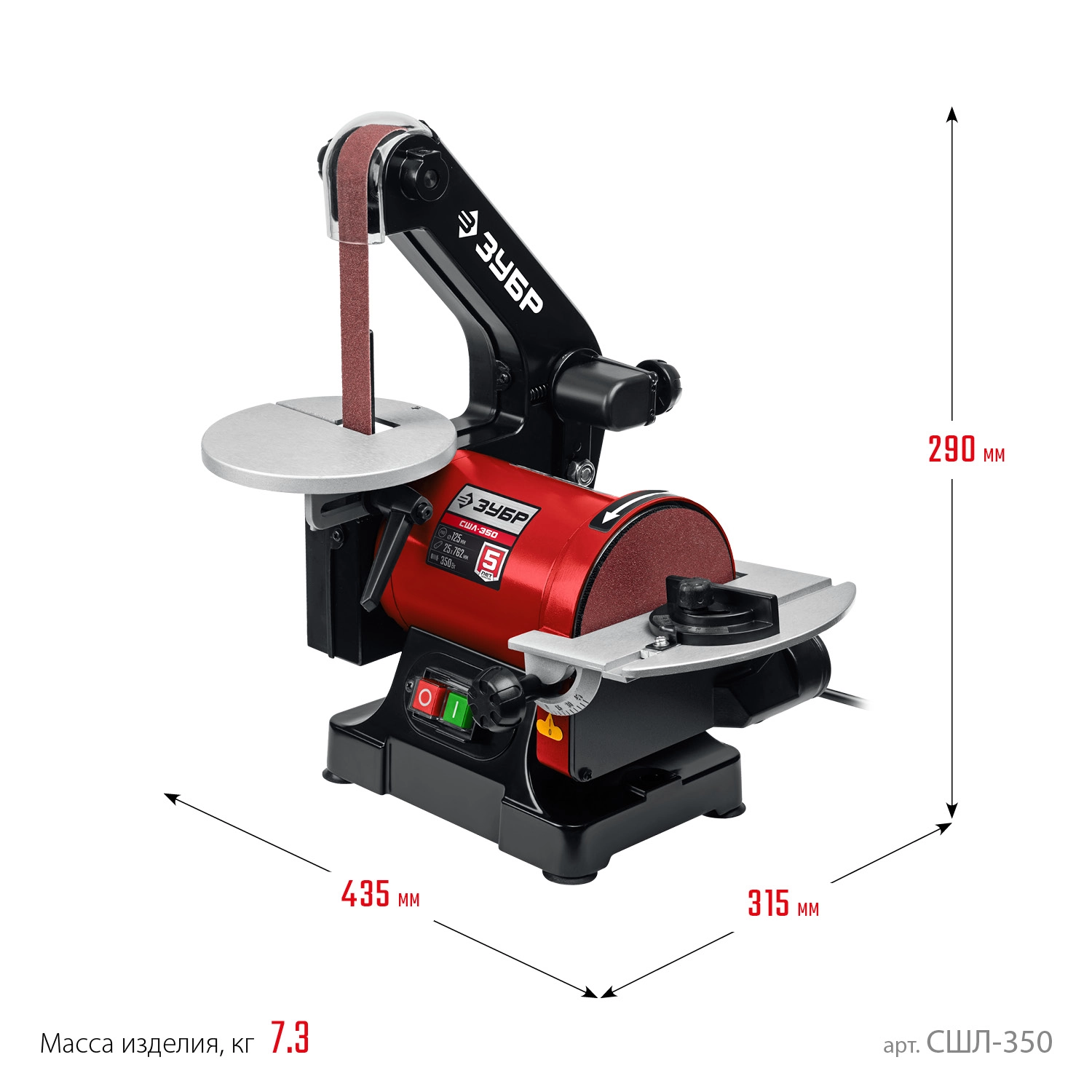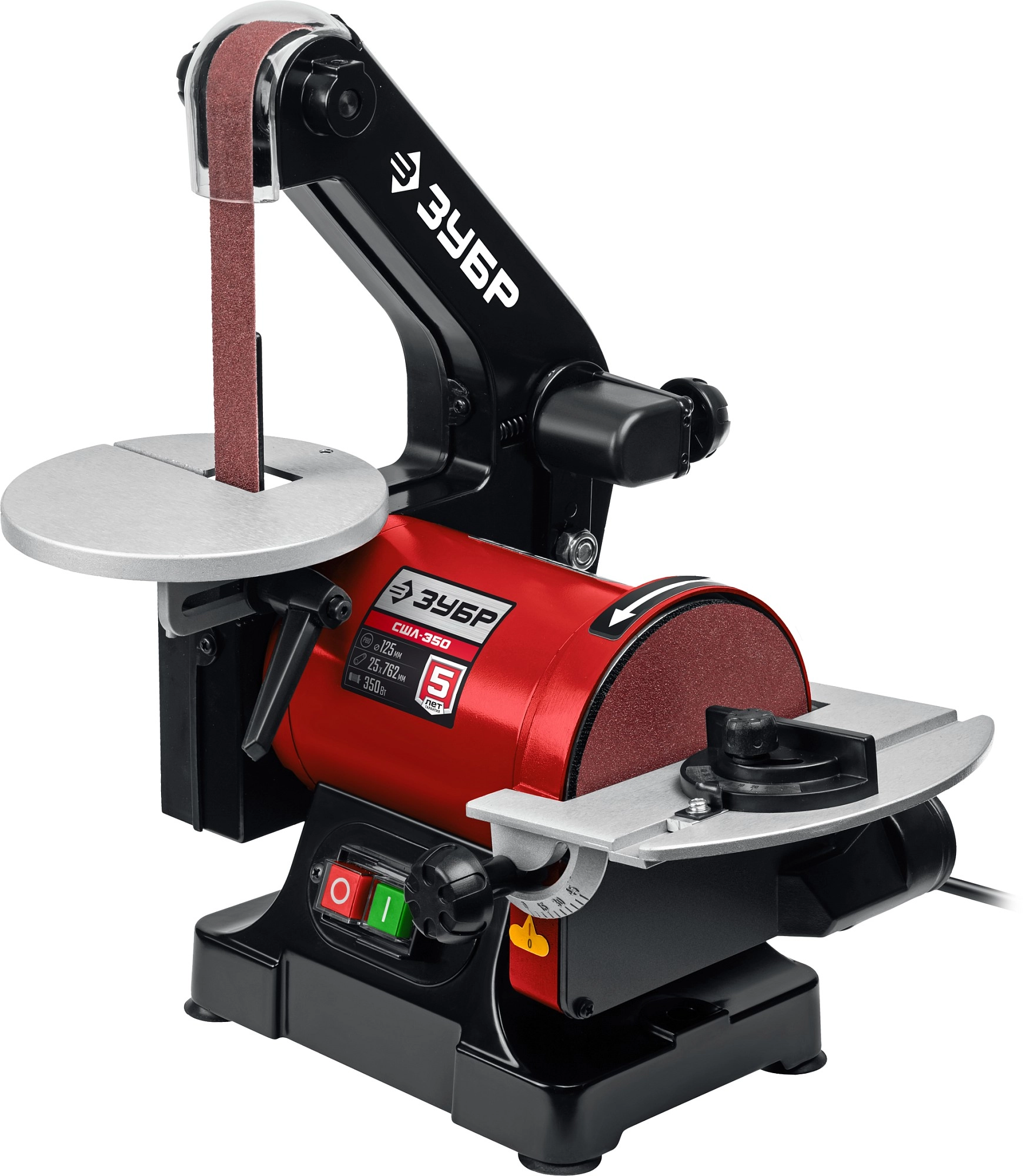 ПроизводителиСтанок тарельчато-ленточный шлифовальный СШЛ-350 (350 Вт, круг 125 мм, лента 762x25 мм, кор.) ЗУБР