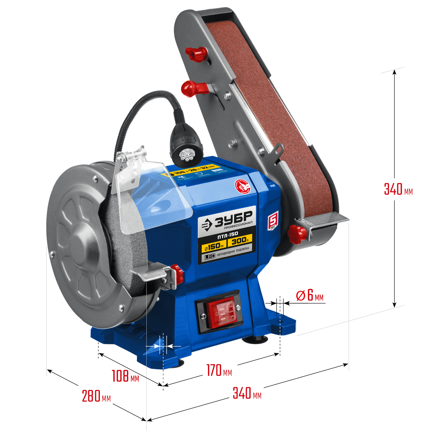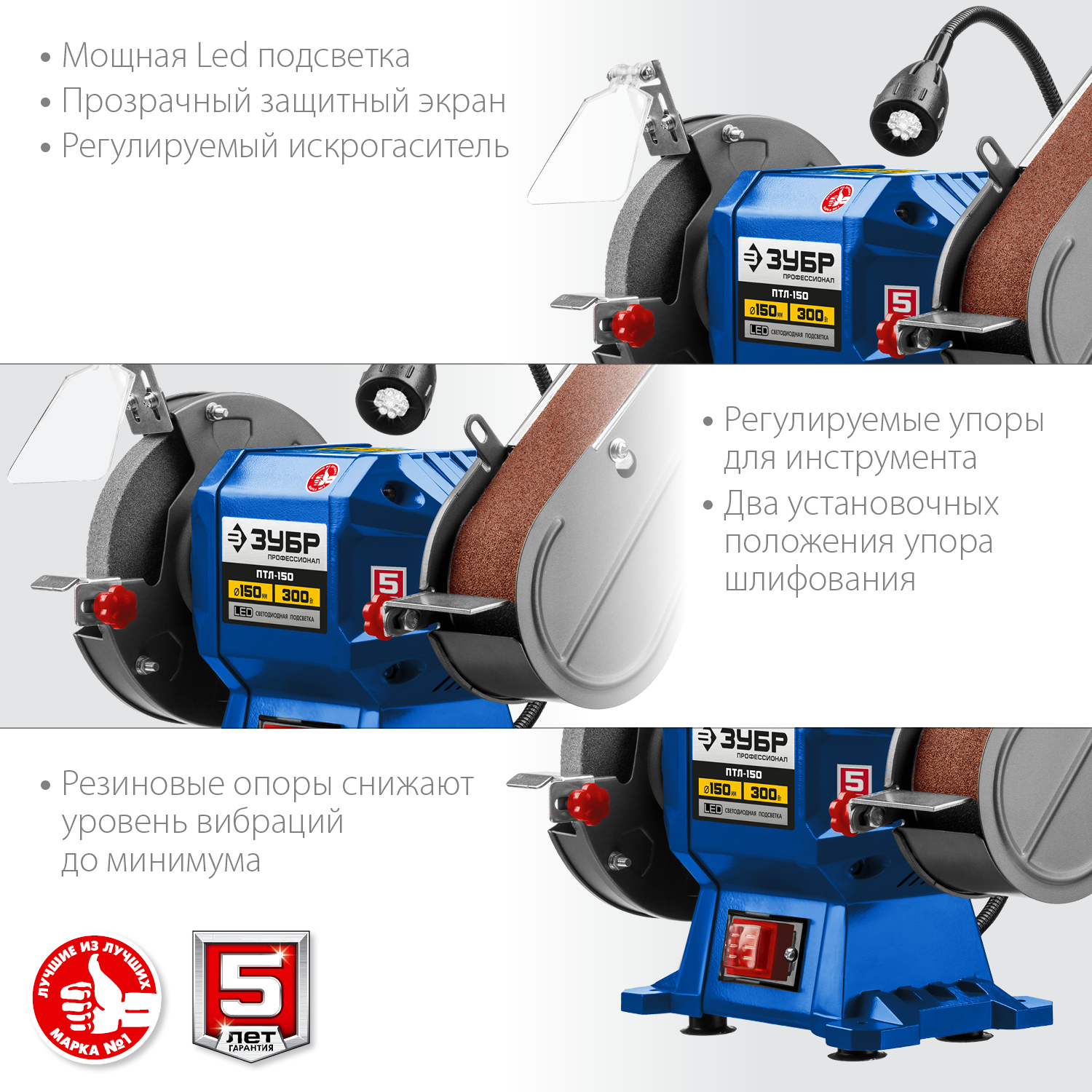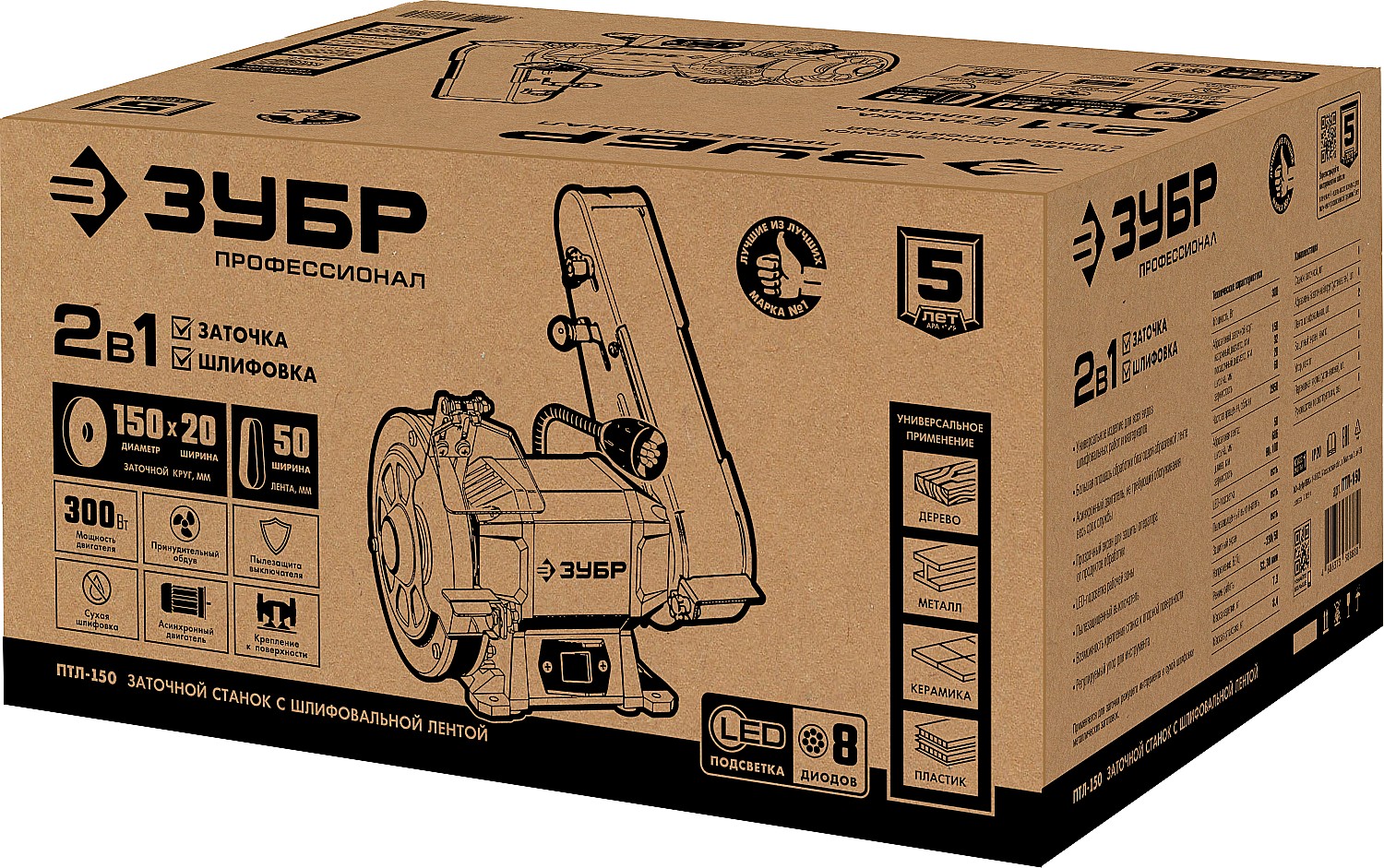ХарактеристикиАртикул ПТЛ-150Бренды ЗубрСтрана производства КитайПотребляемая мощность 300Посадочный диаметр 32Материал металлТолщина круга 20Напряжение 220Кейс в комплекте нетВес 8.4Мощность двигателя 300Рабочий упор 1Частота вращения шлиф. круга 2950Размер заточного круга 150Толщина круга 20Зернистость круга 60Тип электродвигателя асинхронныйШирина 340Толщина второго круга 50Высота 340Электропитание однофазноеМатериал металлПодсветка рабочей зоны ДаРазмер шлифовальной ленты 686х50 ммПрозрачный экран 1Искрогаситель 1Глубина 280Описание товара обновлено 28.01.2026 17:05:59Станок точильный ЗУБР ПТЛ-150, предназначен для гаража, мастерской, используемый для заточки режущего инструмента и шлифовки заготовок. Возможность шлифования больших площадей благодаря абразивной ленте. Возможность крепления к опорной поверхности. Простота конструкции, высокая надежность, компактный размер, два шлифовальных материала с разной зернистостью – все, что нужно для настоящего мастера, ценящего качество и рассчитывающего на долгий срок службыПроизводитель: Крафтул И/Е Гмбх, Альтер Поствег Штр., Лоенинген, Германия