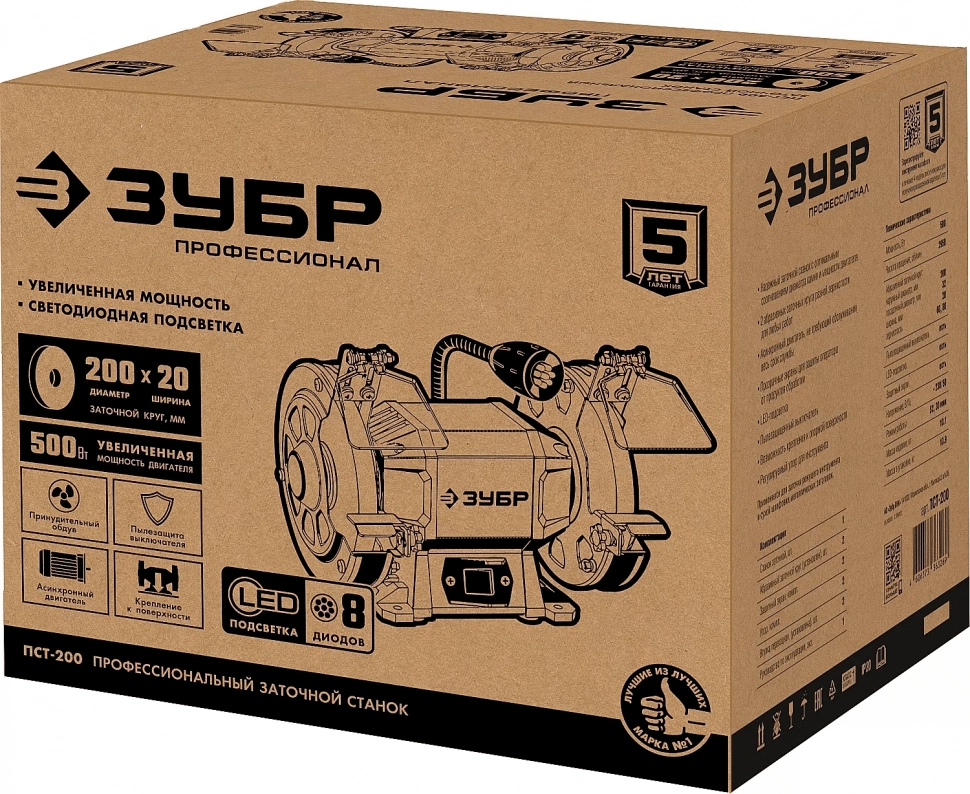 ХарактеристикиАртикул ПСТ-200Бренды ЗубрСтрана производства КитайПотребляемая мощность 500Посадочный диаметр 32Напряжение 230Диаметр диска 200Длина сетевого шнура 2Кейс в комплекте нетВес 10.1Мощность двигателя 500Частота вращения шлиф. круга 2950Размер заточного круга 200Толщина круга 20Зернистость круга 60/80Тип электродвигателя асинхронныйПосадочный диаметр диска 32Передача прямаяРазмер второго заточного круга 200Материал металл/пластикПодсветка рабочей зоны ДаОписание товара обновлено 08.12.2025 13:41:01Станок точильный ЗУБР ПСТ-200, предназначен для заточки и шлифовки металлических заготовок и режущего инструмента.