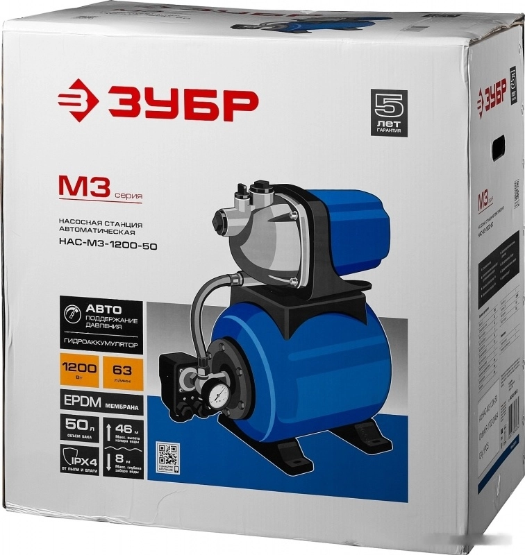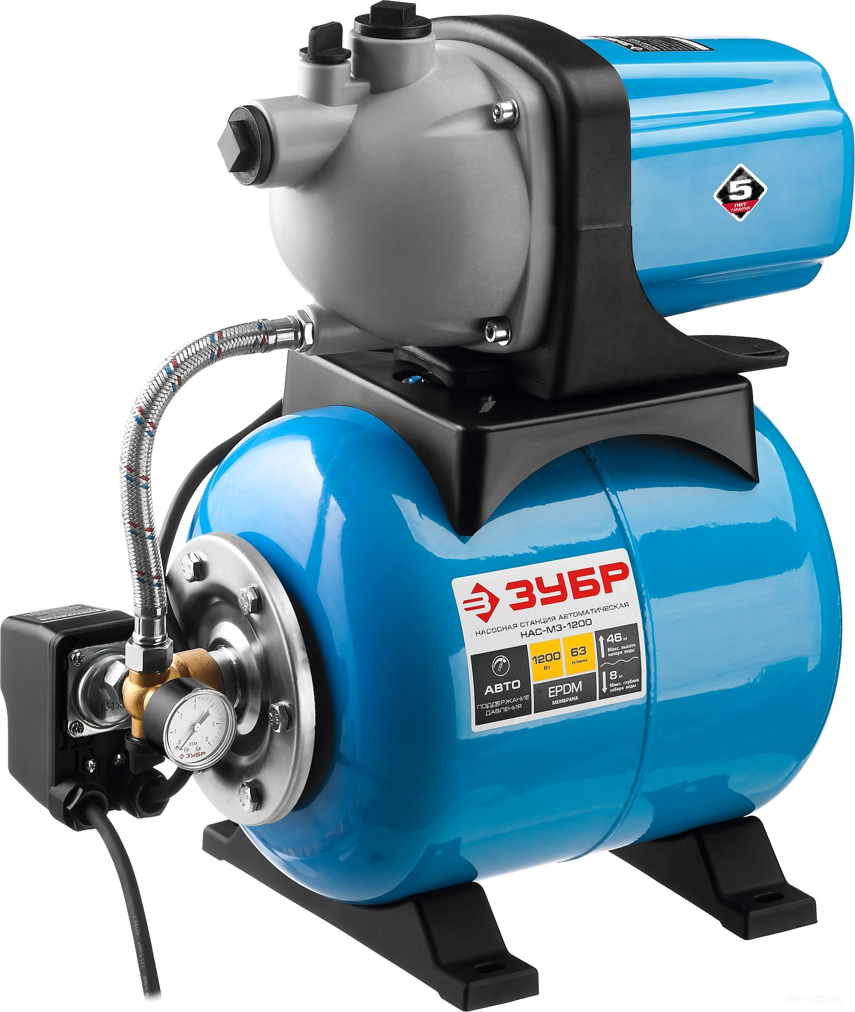 ПроизводителиСтанция насосная ЗУБР "МАСТЕР" М3 автоматическая, 1200 Вт, пропускная способность 63 л/м НАС-М3-1200