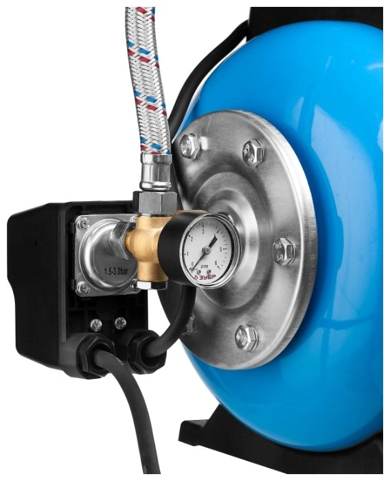 Объем гидроаккумулятора 20 л обеспечивает полноценный водоразбор с более редкими включениями насоса, что продлевает срок его службы и способствует экономии электроэнергии