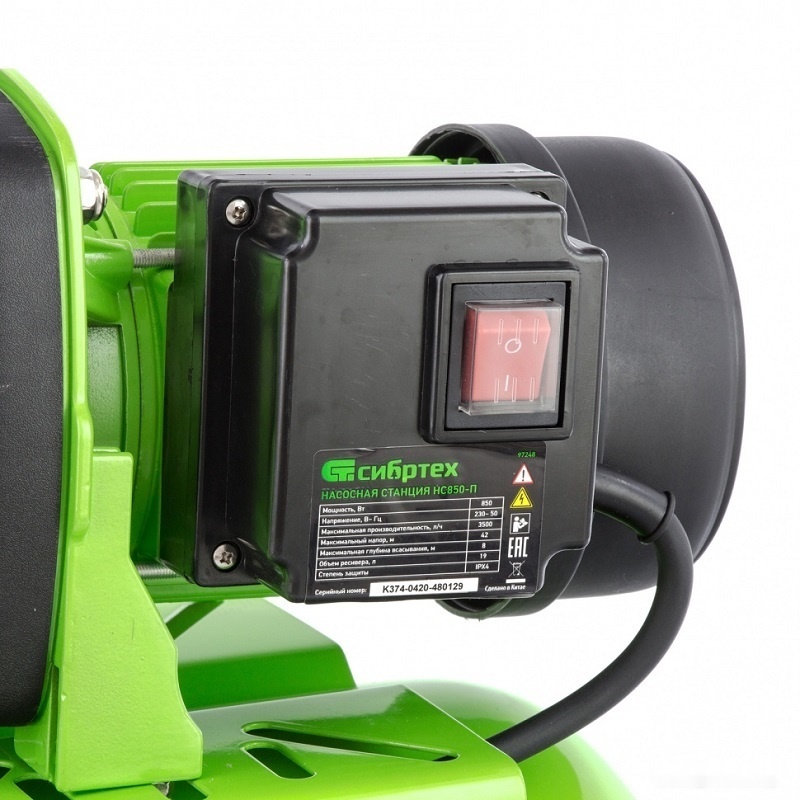 ПроизводителиСтанция насосная НС850-П, 850 Вт, напор 42 м, 3500 л/ч, ресивер 19 л Сибртех