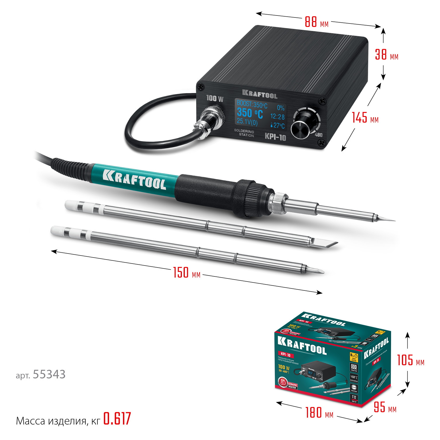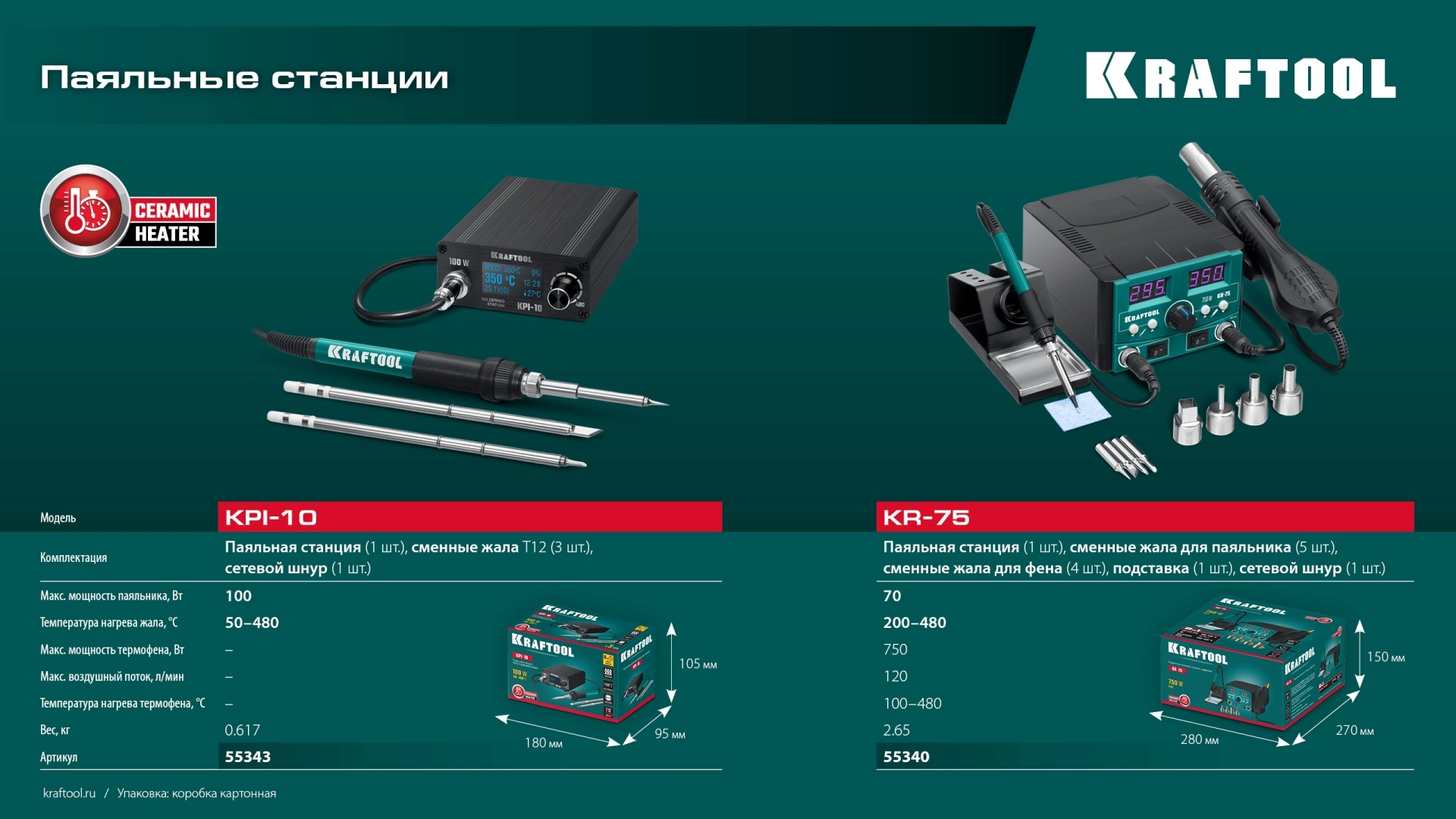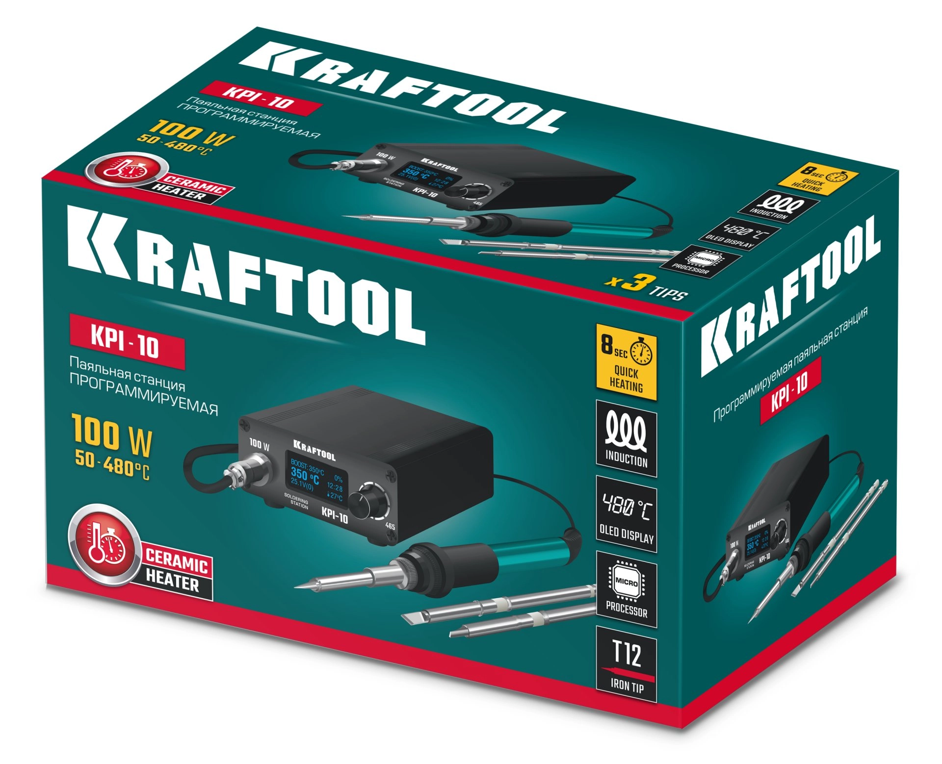 ПроизводителиСтанция паяльная программируемая, 50 - 480°C, 100 Вт, 3 жала Т12, KPI-10 (55343) KRAFTOOL