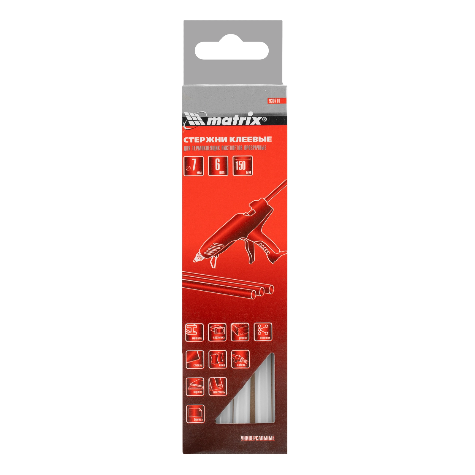 ПроизводителиСтержни для клеевых пистолетов, прозрачные, 7мм х 150 мм, 6шт. (930710) MATRIX