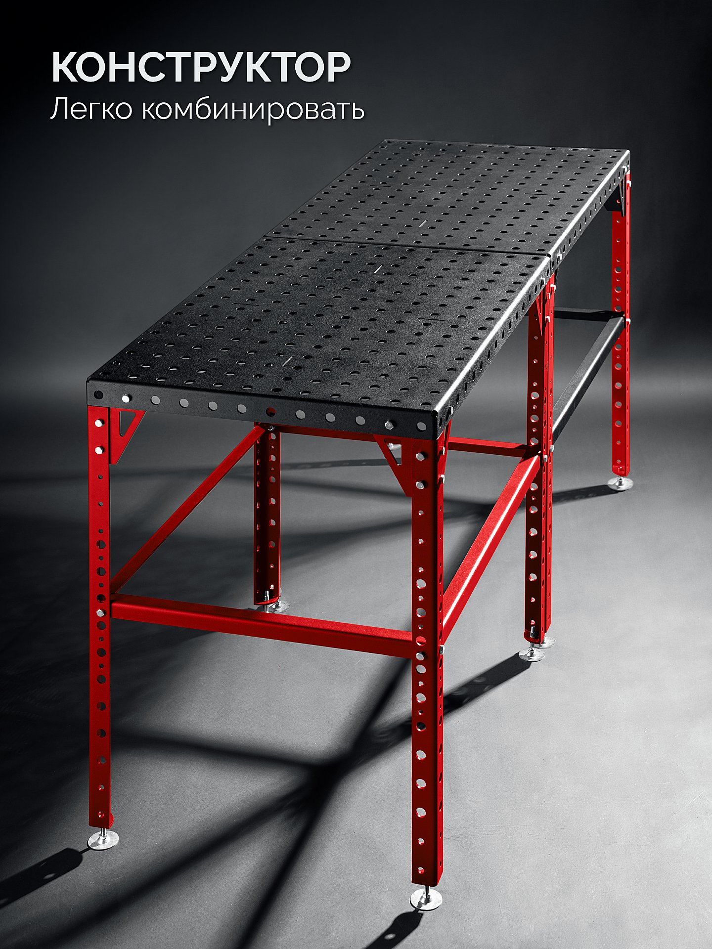 для проведения сварочных и сборочных работ, с возможностью фиксации деталей, позволяет производить сборку и сварку конструкций любой сложной конфигурации. Стол можно использовать как слесарный верстак, сборочно-сварочный стол, мобильный верстак или преобразовать его в станок.