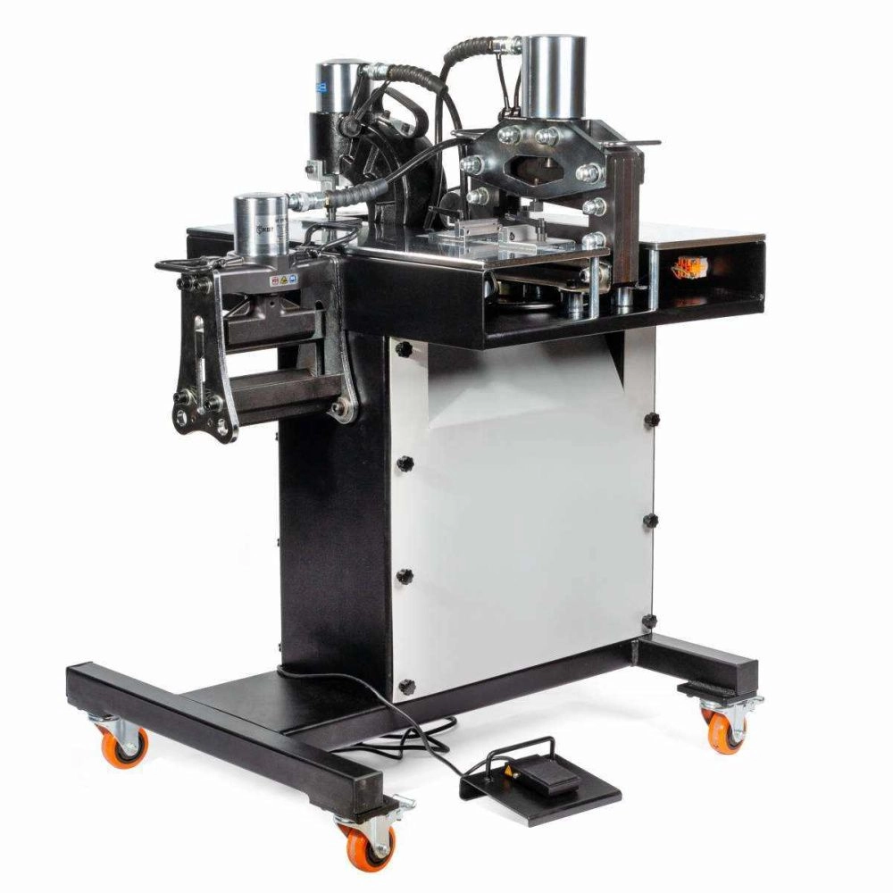 В комплекте: рабочий стол 850х700х1200 мм электрогидравлическая помпа ПМЭ-7050 пресс для гибки ШГ-200 NEO пресс для резки ШР-200 NEO пресс для перфорации ШД-110 NEO набор из 6 сменных перфоформ МПШО-6/8/10/12/16/20