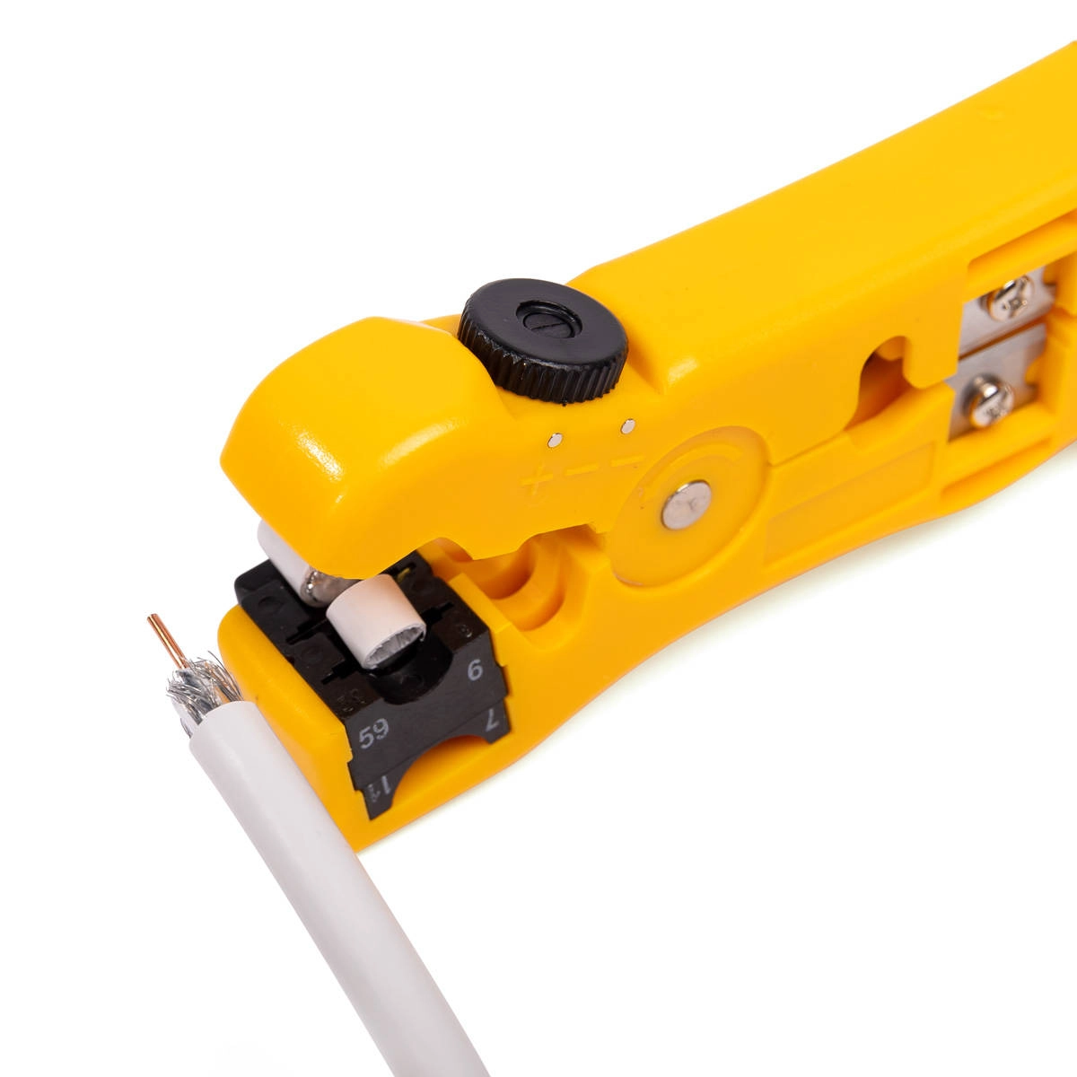 Стриппер коаксиальный КС-352 серия ПРОФИ КВТ арт. 89440 — предназначен для разделки коаксиальных кабелей RG59, RG6, RG7, RG11.