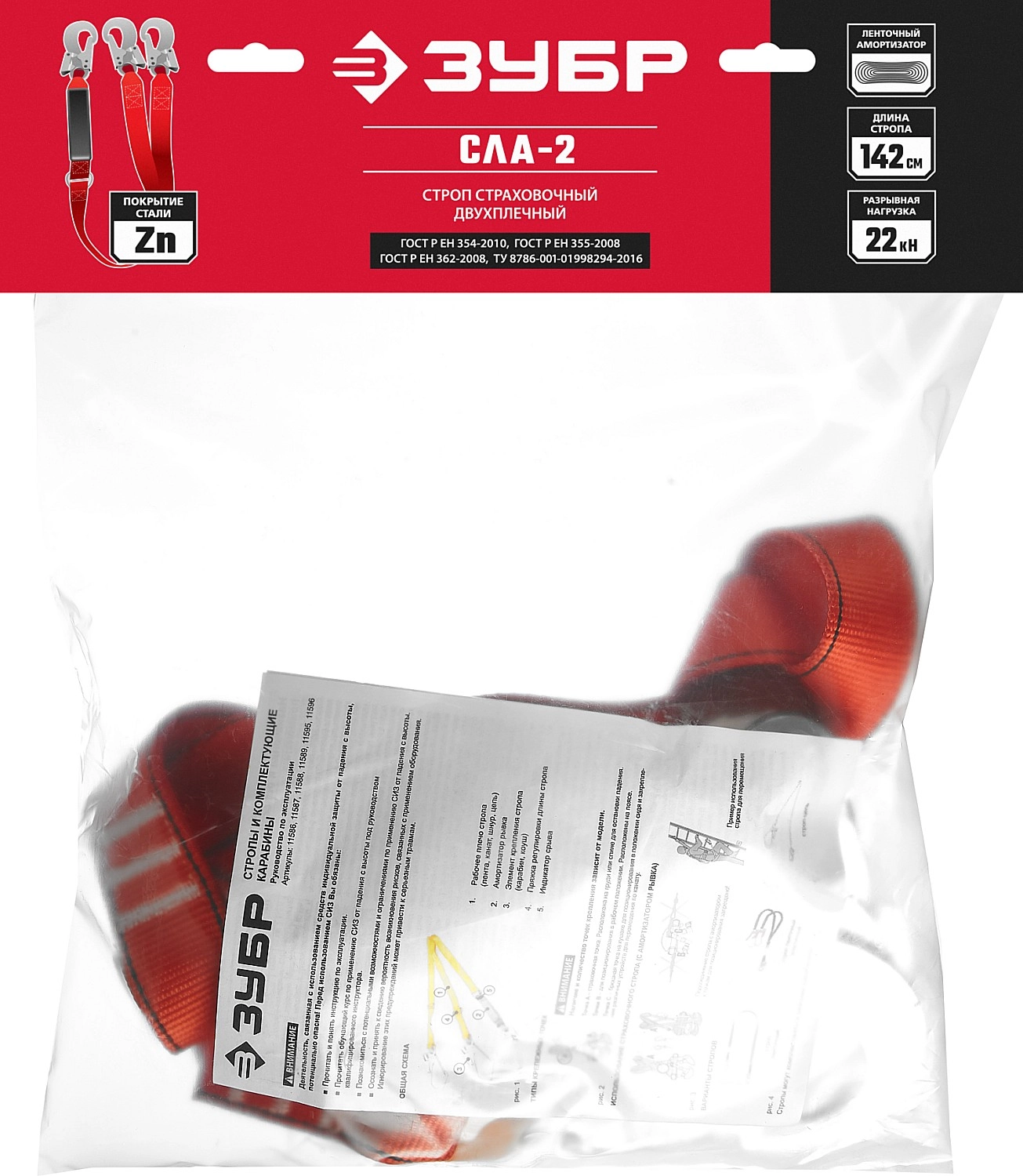 ПроизводителиСтроп страховочный двухплечный СЛА-2 1.42м, разрывн. лент. аморт. (11587) ЗУБР