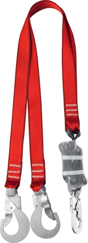 Строп, в сочетании со страховочным поясом или привязью, служит для остановки падения человека при работе на высоте.