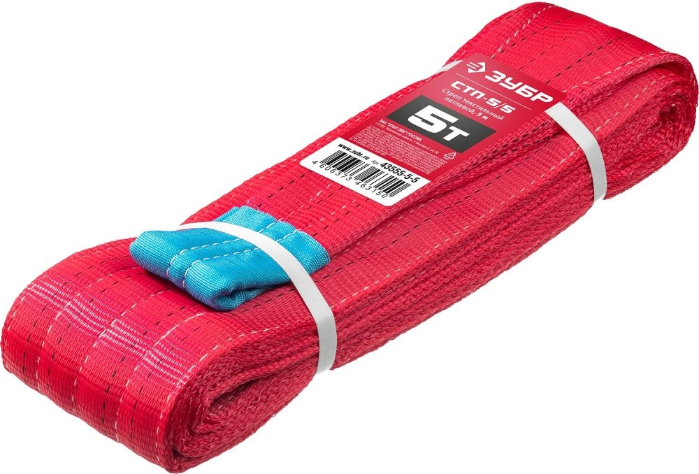 ПроизводителиСтроп текстильный петлевой, красный, г/п 5 т, длина 5м "СТП-5/5" (43555-5-5) ЗУБР