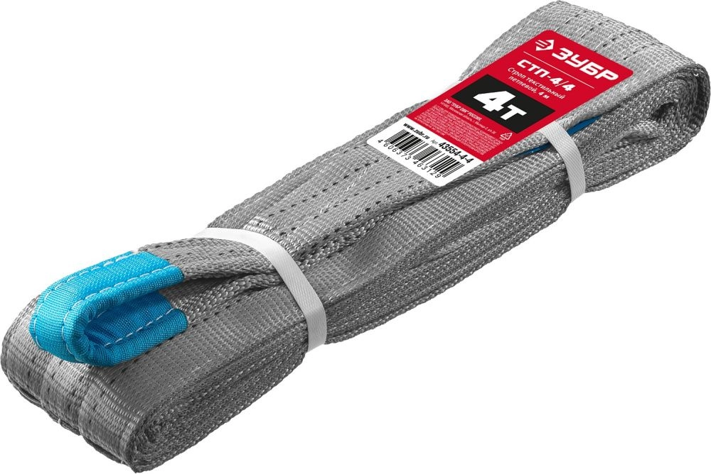 ПроизводителиСтроп текстильный петлевой, серый, г/п 4 т, длина 4м "СТП-4/4" (43554-4-4) ЗУБР