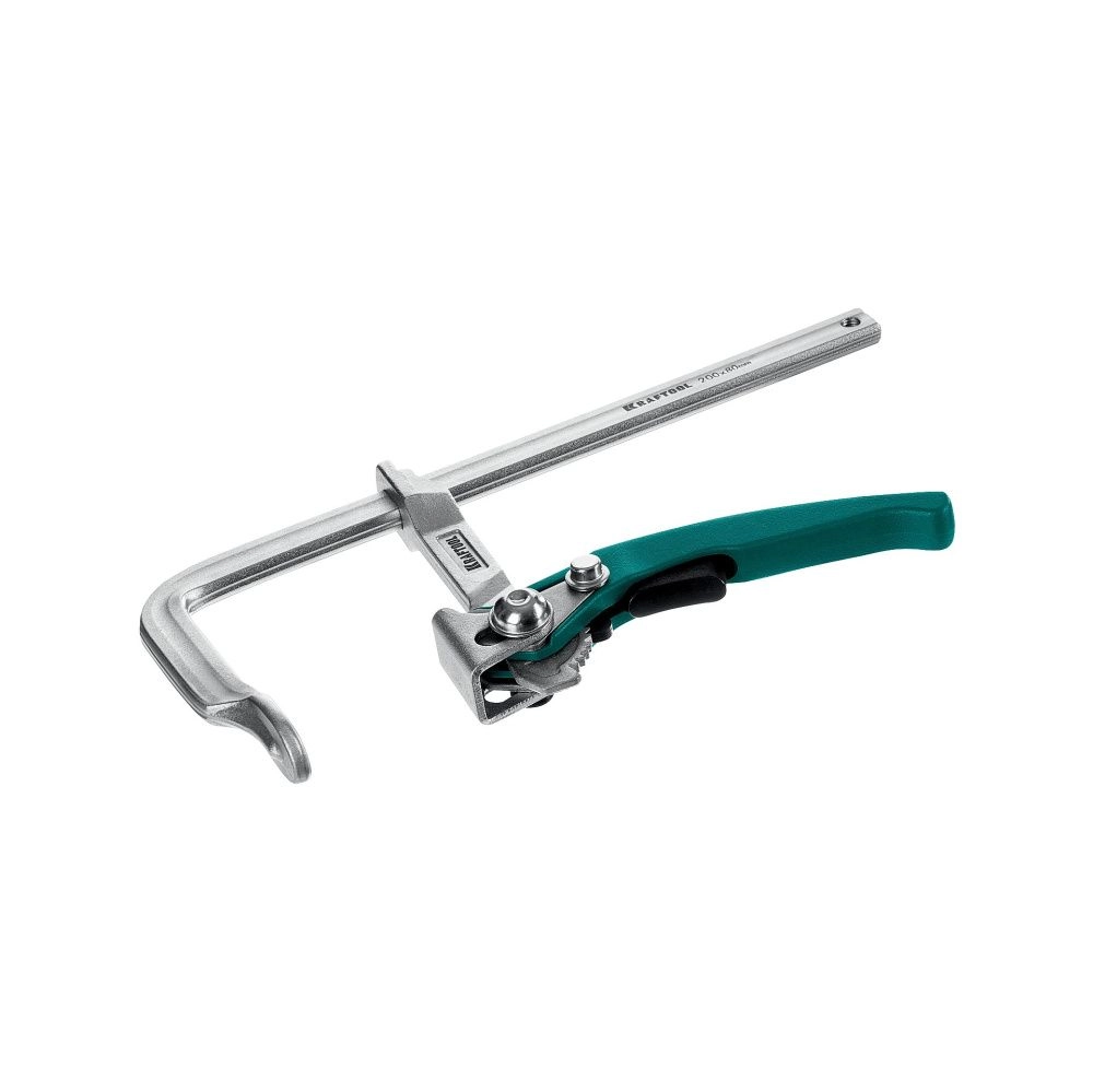 Профессиональный быстрозажимной инструмент , Цельнокованная мегапрочная направляющая рейка. Надежный храповый механизм с эксцентриковым зажимом. Сила сжатия 280 кг. Жесткая конструкция рамы. Сохраняет силу зажима даже при воздействии вибрации. Подходит для применения в машинной среде. Возможна работа одной рукой. Продуманная система снятия зажима даже при экстримальном сжатии. Для профессионального использования.Производитель: Крафтул И/Е Гмбх, Альтер Поствег Штр., Лоенинген, Германия