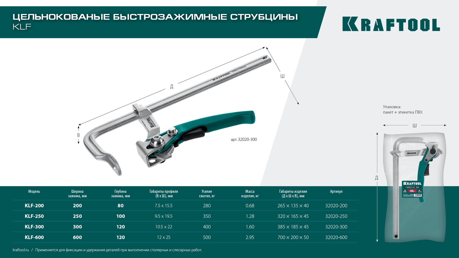 ПроизводителиСтрубцина быстрозажимная, 250/100 мм,KLF-250 (32020-250) KRAFTOOL