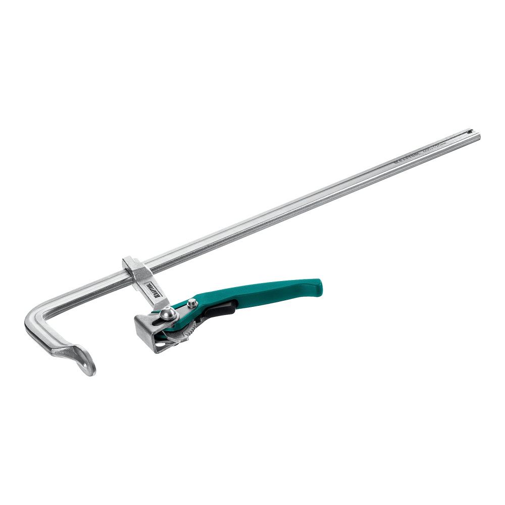 Профессиональный быстрозажимной инструмент , Цельнокованная мегапрочная направляющая рейка. Надежный храповый механизм с эксцентриковым зажимом. Сила сжатия 500 кг. Жесткая конструкция рамы. Сохраняет силу зажима даже при воздействии вибрации. Подходит для применения в машинной среде. Возможна работа одной рукой. Продуманная система снятия зажима даже при экстримальном сжатии. Для профессионального использования.