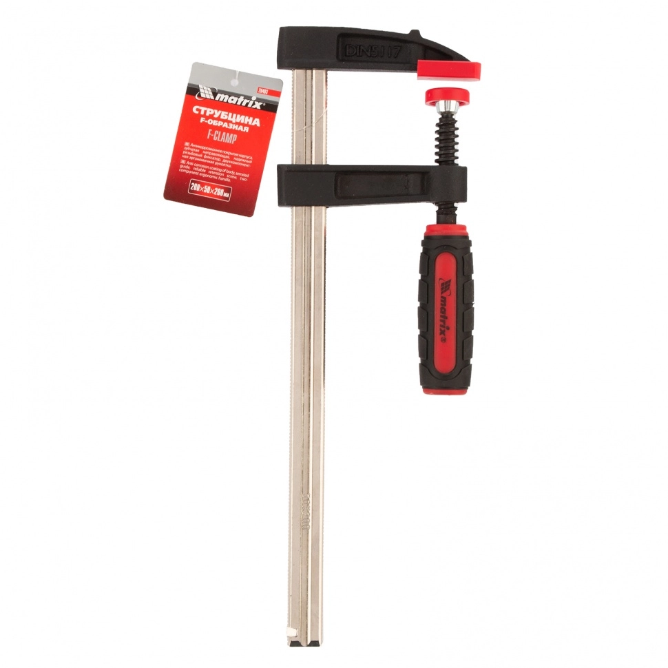 F-образная струбцина Matrix 20403, 200 х 50 х 260 мм, используется для зажима металлических, деревянных и других заготовок для их последующей обработки или сборки.