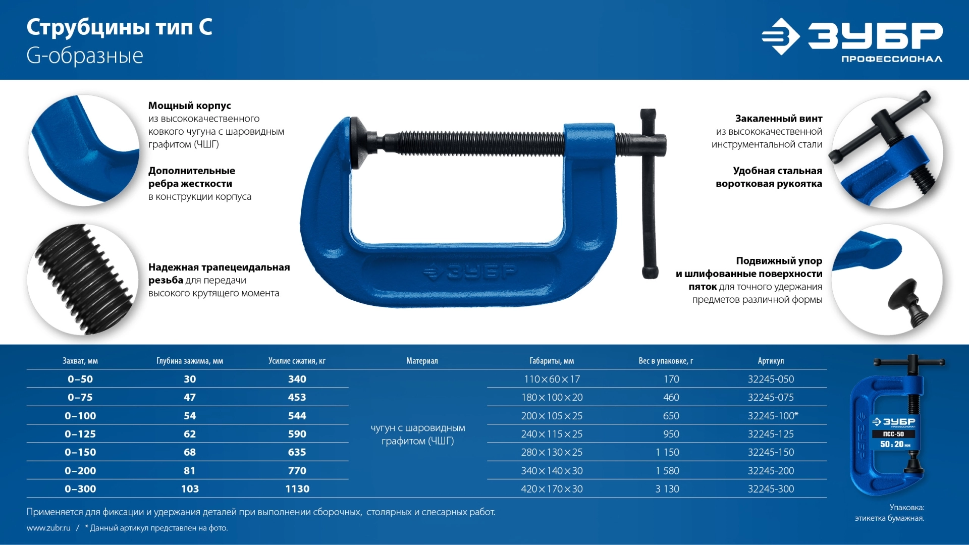 ПроизводителиСтрубцина тип "G" 300мм, корпус - ковкий чугун "ПРОФЕССИОНАЛ" (32245-300_z02) ЗУБР
