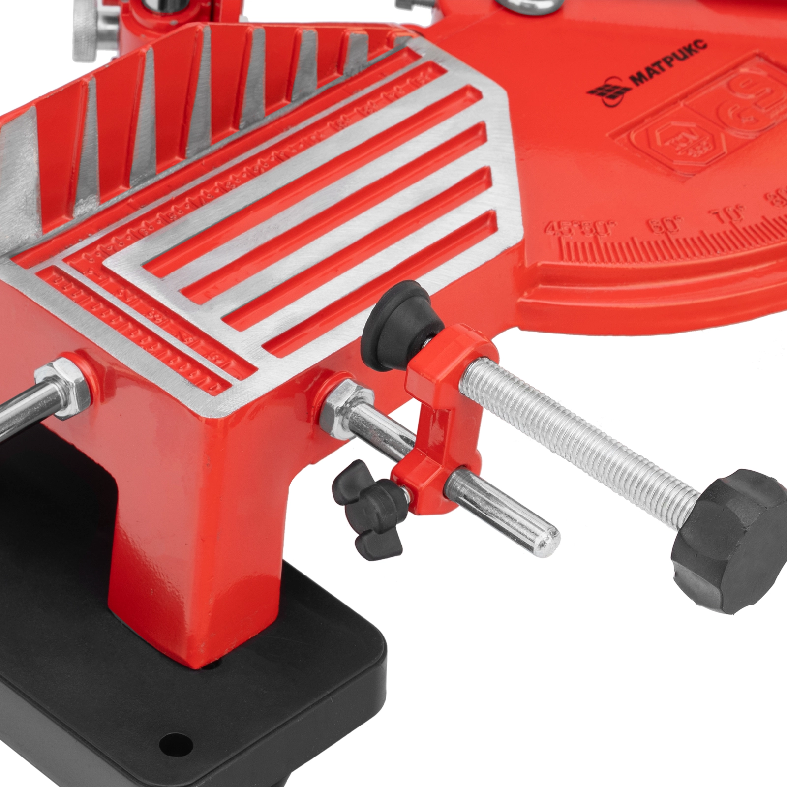 Прецизионное стусло МАТРИКС 22750 с пилой длиной 600 мм и функцией наклона полотна, предназначено для точного распила заготовок шириной до 16 см и толщиной до 11 см. Оно пригодится любителям и профессионалам для подготовки к стыковке ламината, плинтусов, реек, штапиков и т.д. Регулировка наклона полотна позволяет осуществлять распил не только в вертикальной, но и в горизонтальной плоскостях. Возможна распиловка деталей из древесины и композитных материалов под произвольными углами в диапазоне 45-135 градусов.Производитель: ООО "Мир инструмента", Россия