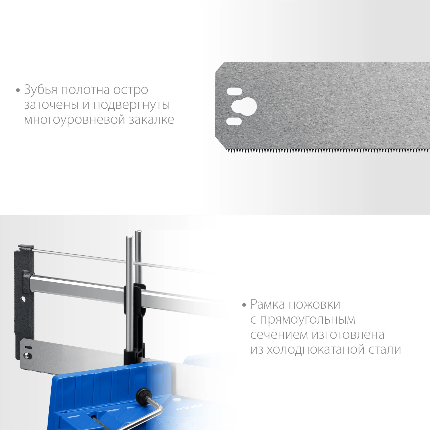 Рамка ножовки изготовлена из холоднокатаной стали и имеет точное прямоугольное сечение