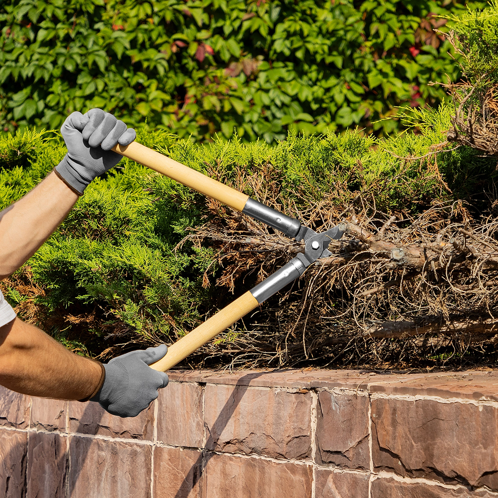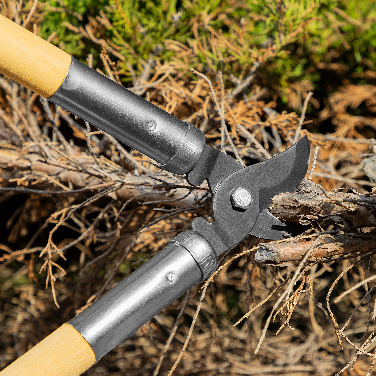 Деревянные рукоятки удобно лежат в руках, что повышает комфортность работы сучкорезом.