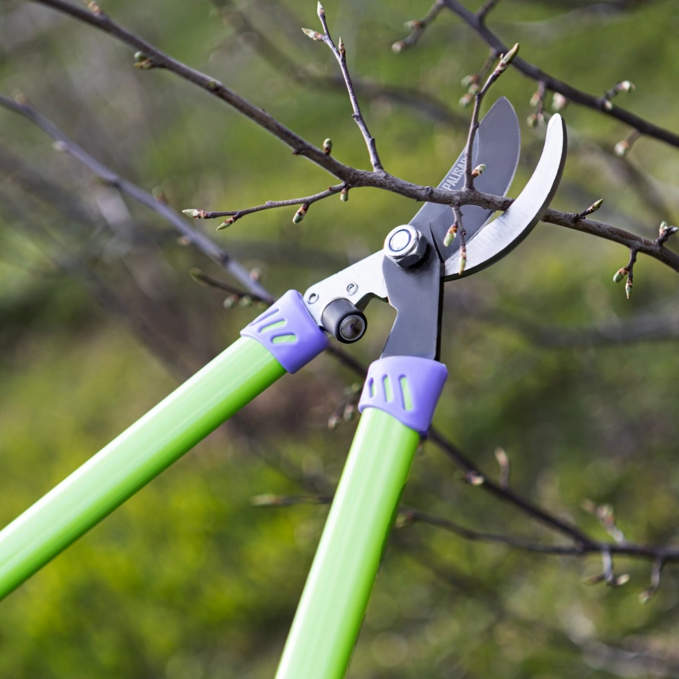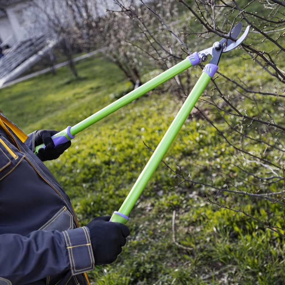 Используется для работы двумя руками, удобен для обрезки высоко растущих, а также очень жестких веток.