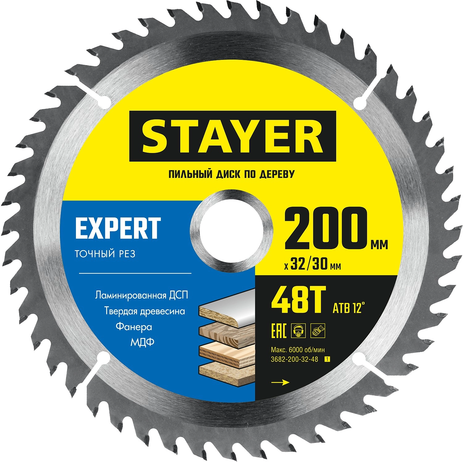 ПроизводителиДиск пильный 200х32/30х48T по дереву, точный рез "EXPERT" (3682-200-32-48_z01) STAYER