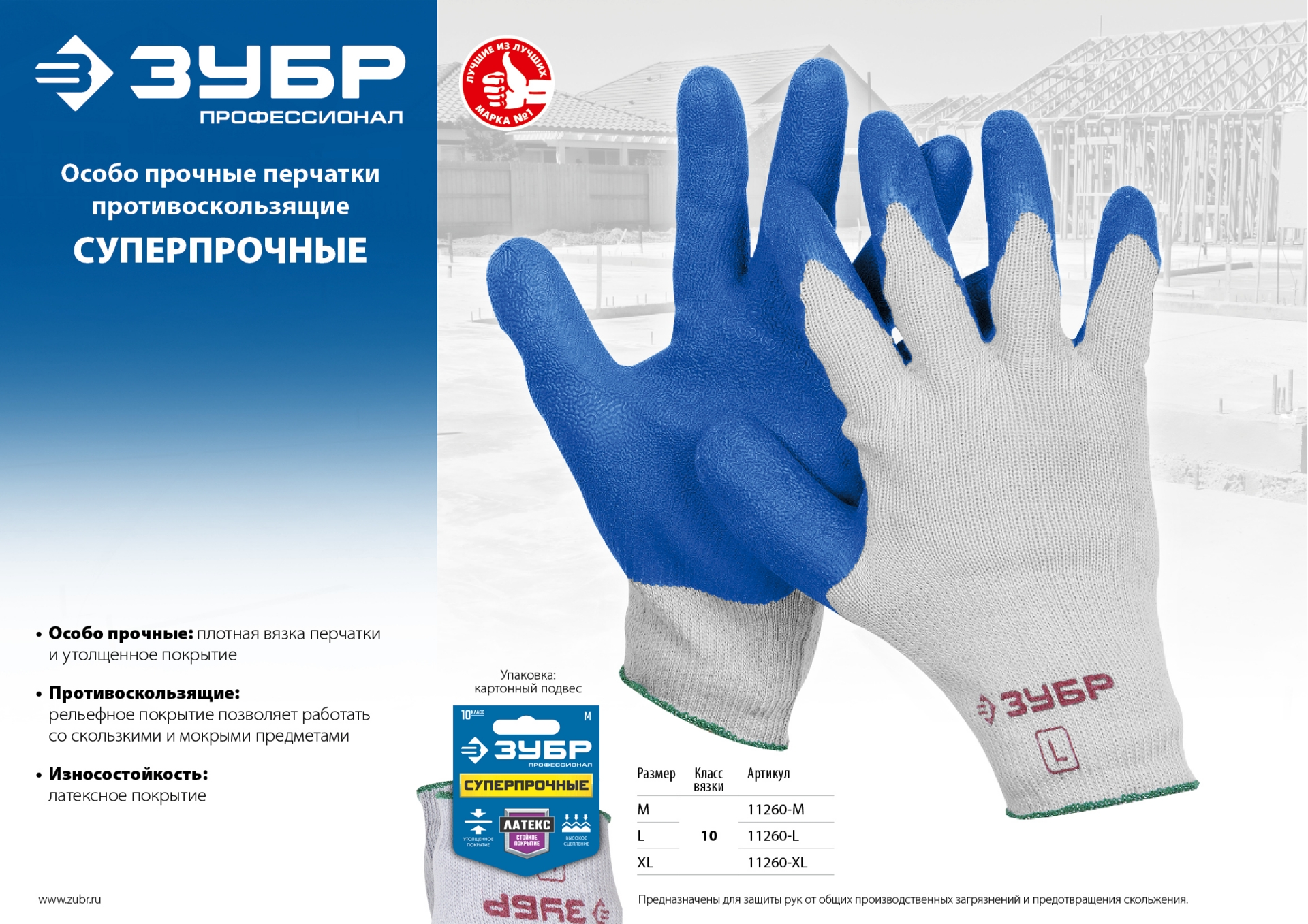 ПроизводителиСУПЕРПРОЧНЫЕ, размер M, рельефные особопрочные противоскользящие перчатки, 11260-M (11260-M) ЗУБР