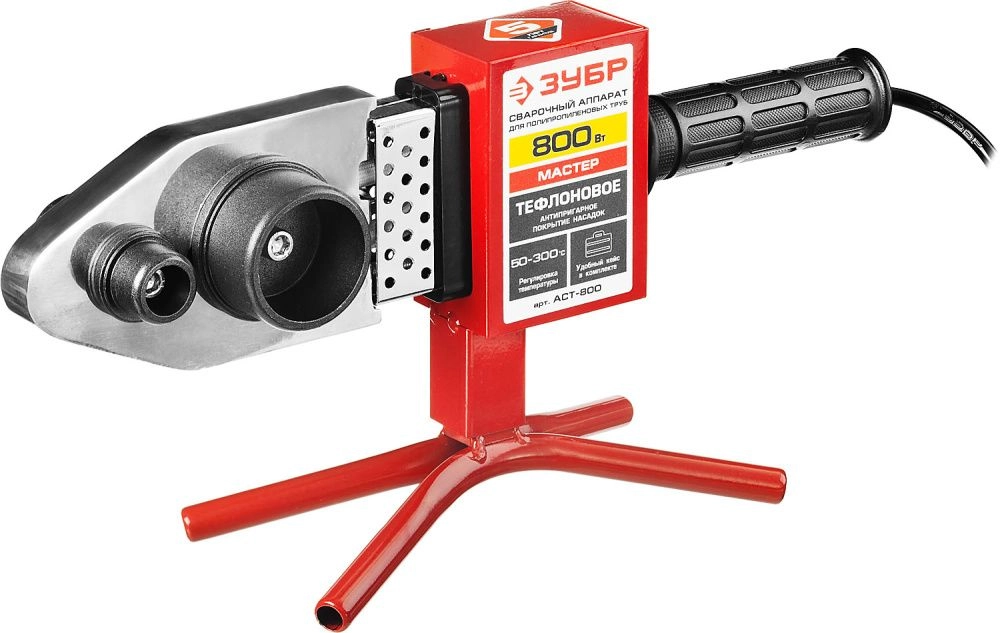 Аппарат подходит как для опытных мастеров, так и для новичков, не требует специального оборудования для проведения ручной сварки разных видов полипропиленных труб и фитингов.ХарактеристикиАртикул АСТ-800Бренды ЗубрСтрана производства КитайПотребляемая мощность 800Длина сетевого шнура 1.5Вес 2.95Сварочный аппарат для полипропиленных труб ЗУБР используется в сфере сантехнических работ для быстрого и легкого образования надежного соединения трубных систем.Аппарат подходит как для опытных мастеров, так и для новичков, не требует специального оборудования для проведения ручной сварки разных видов полипропиленных труб и фитингов.