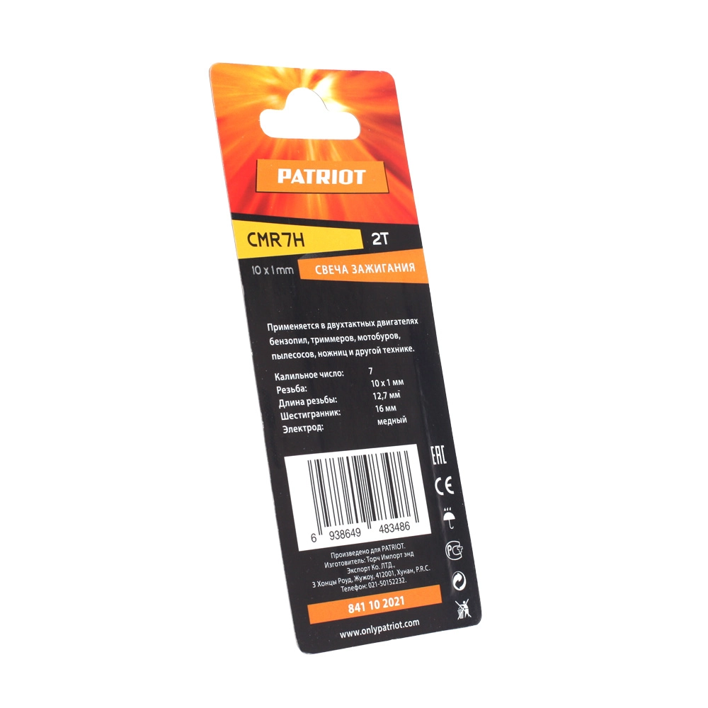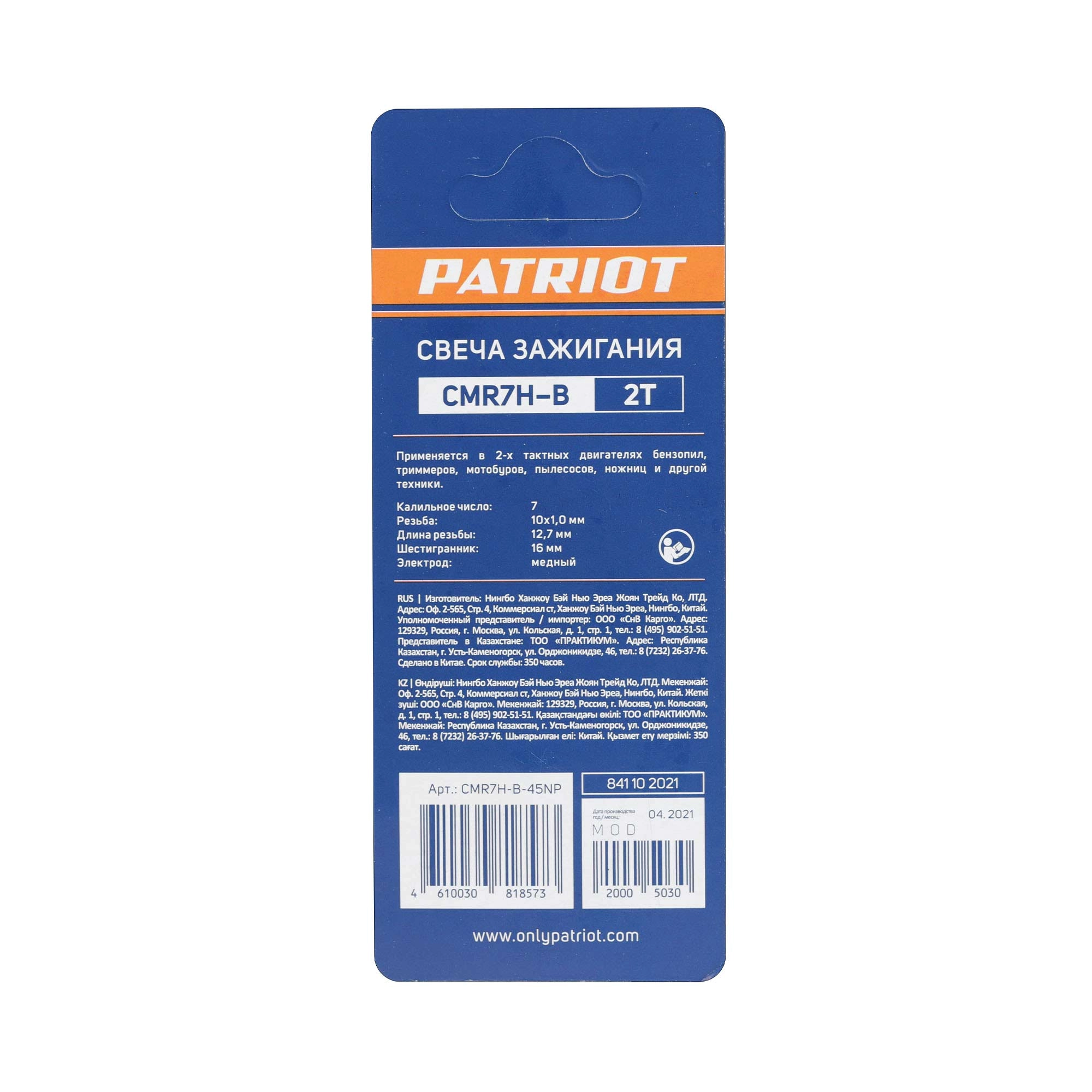 ПроизводителиСвеча зажигания CMR7H-B для 2T двигателей М10х1.0 PATRIOT