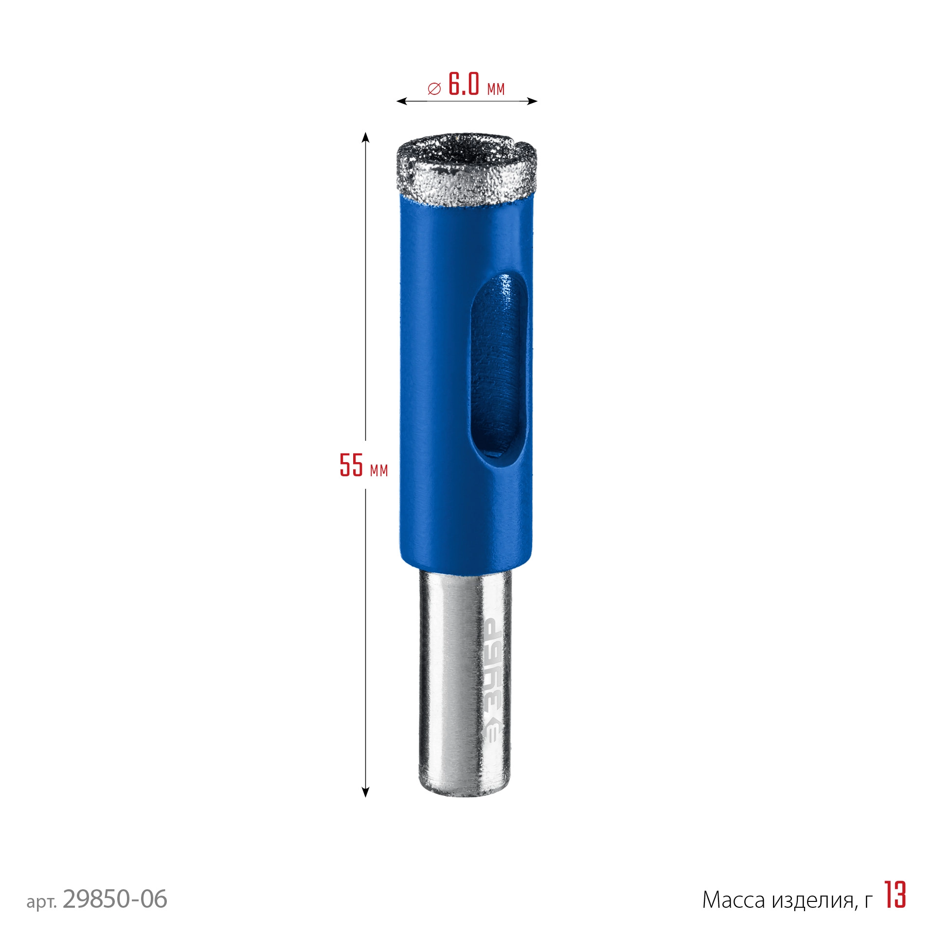 ПроизводителиСверло алмазное трубч. 6мм, зерно Р60, керам., кафель, стекло "ПРОФИ" (29850-06) ЗУБР