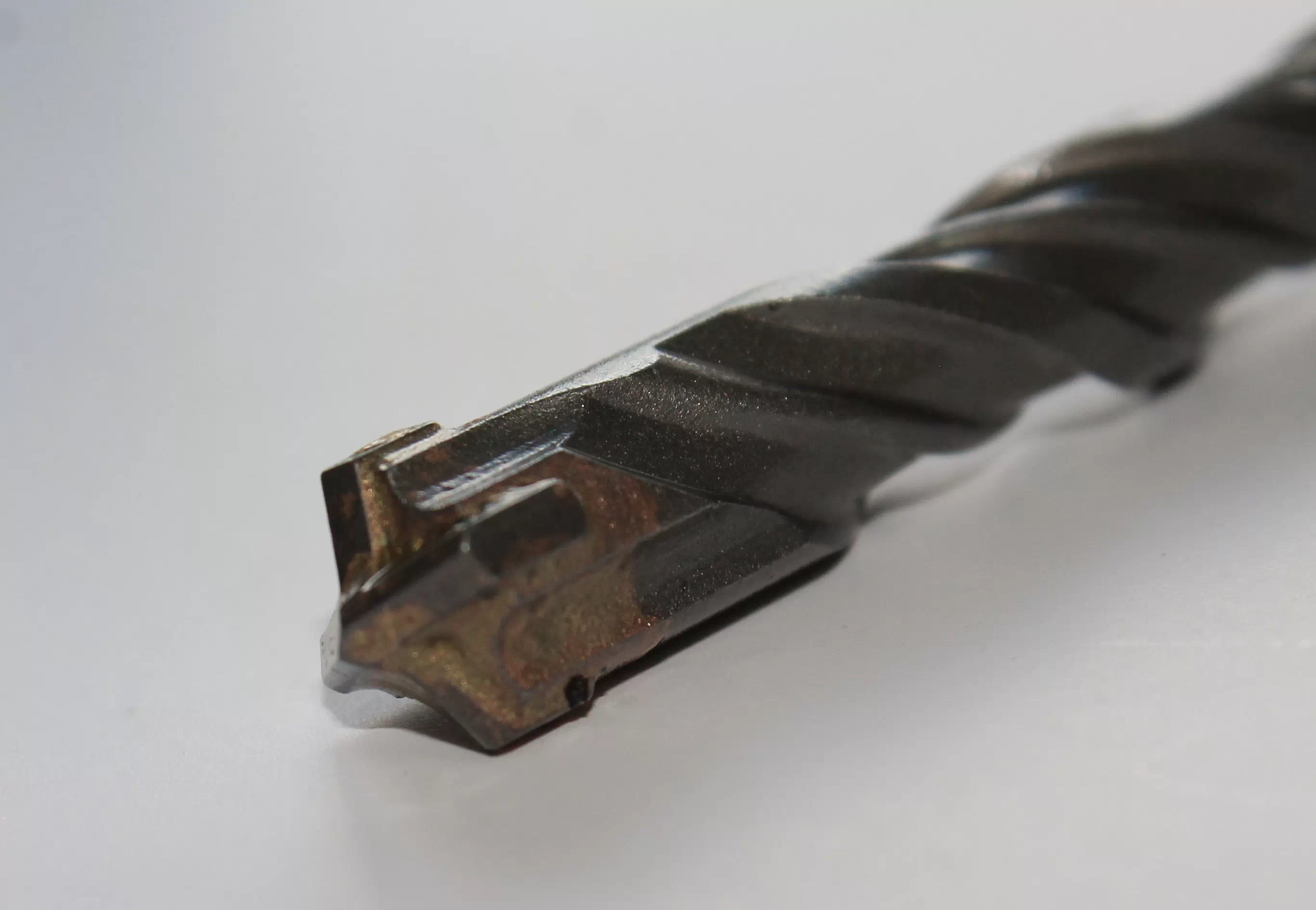 - Форма наконечника с 4-мя режущими гранями более обеспечивает длительный срок службы при работе по армированному бетону, по сравнению с бурами с 2-мя гранями.