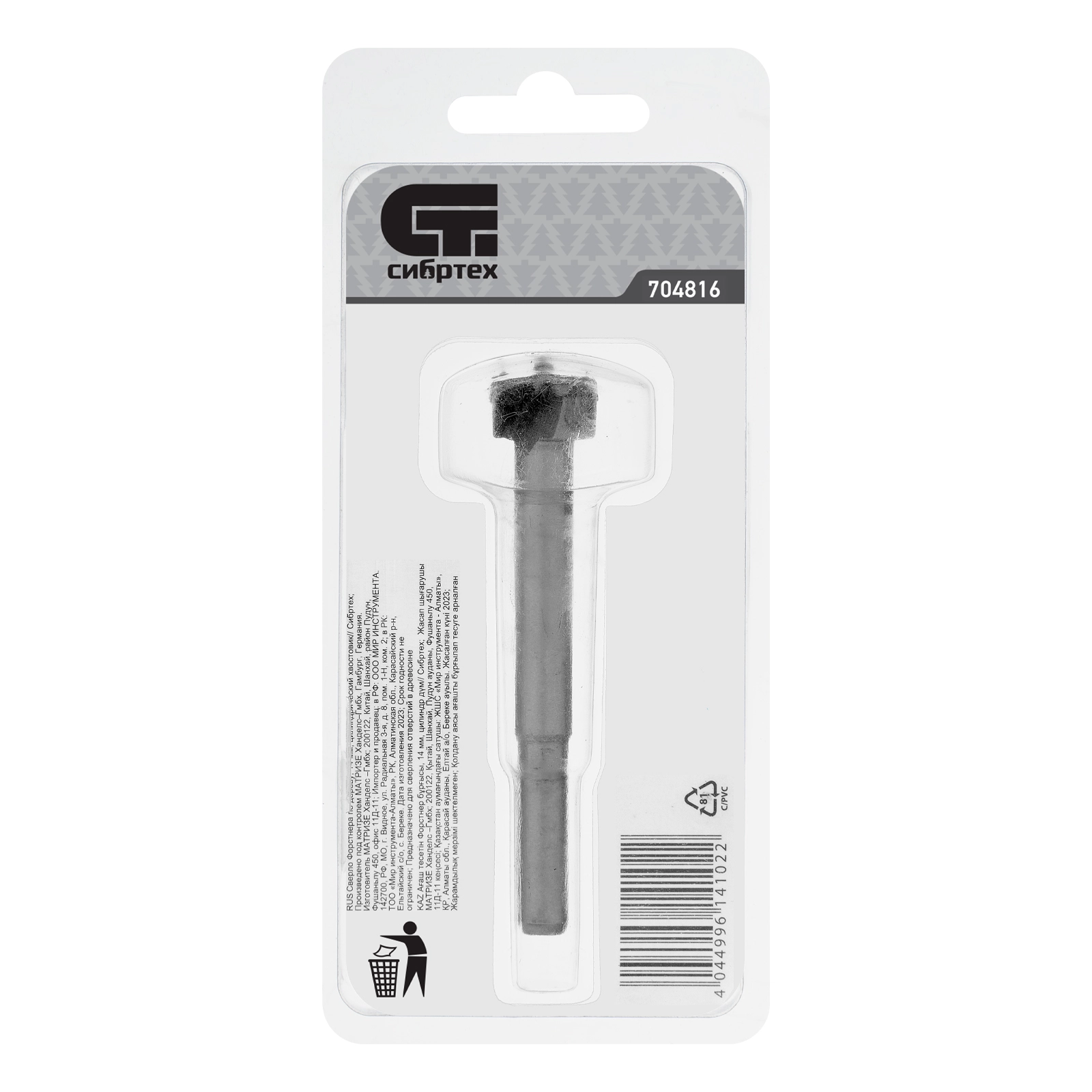 Сверло Форстнера по дереву Сибртех 704816 с цилиндрическим хвостовиком, используется для получения глухих отверстий диаметром 16 мм в древесине, ДСП, ДВП и других материалах.