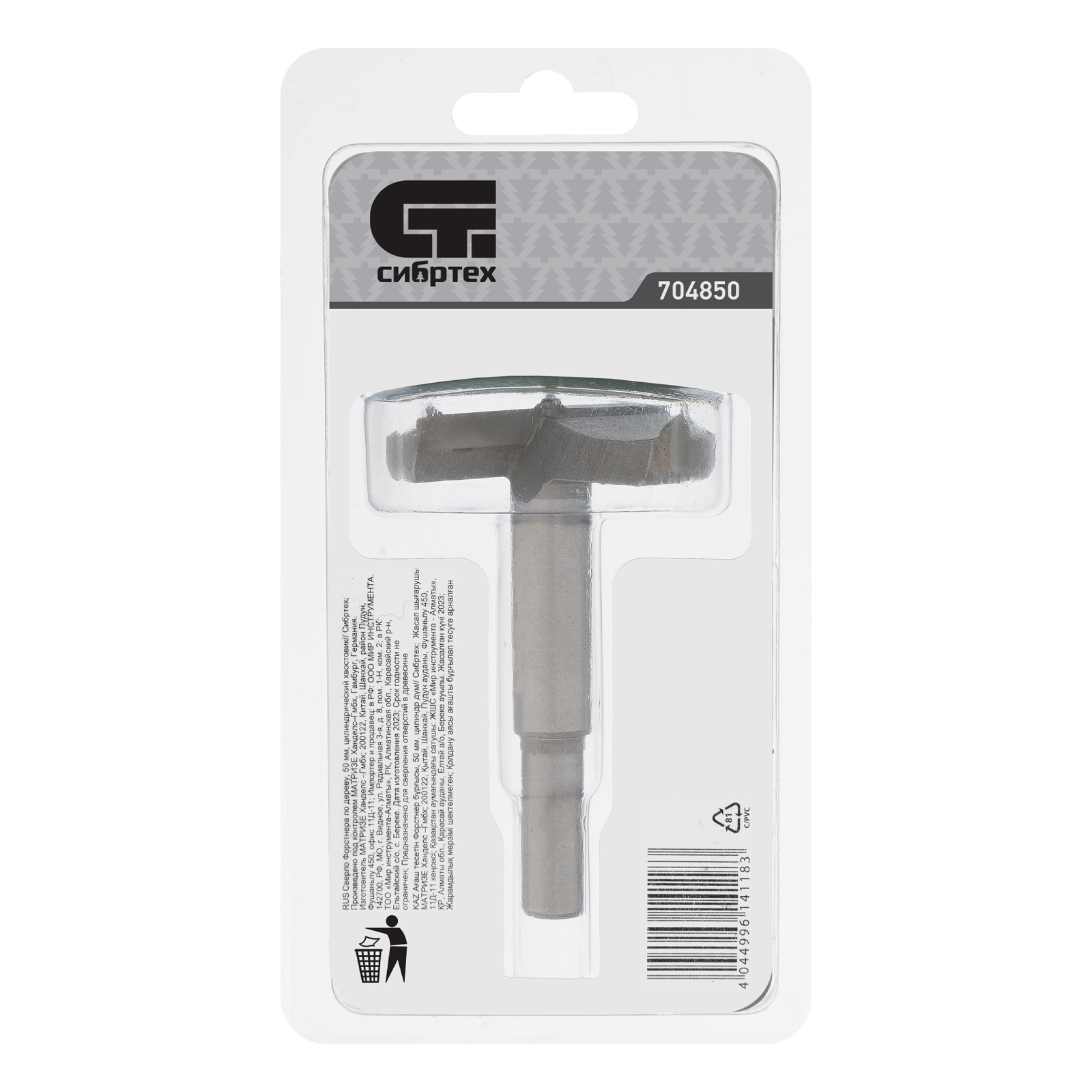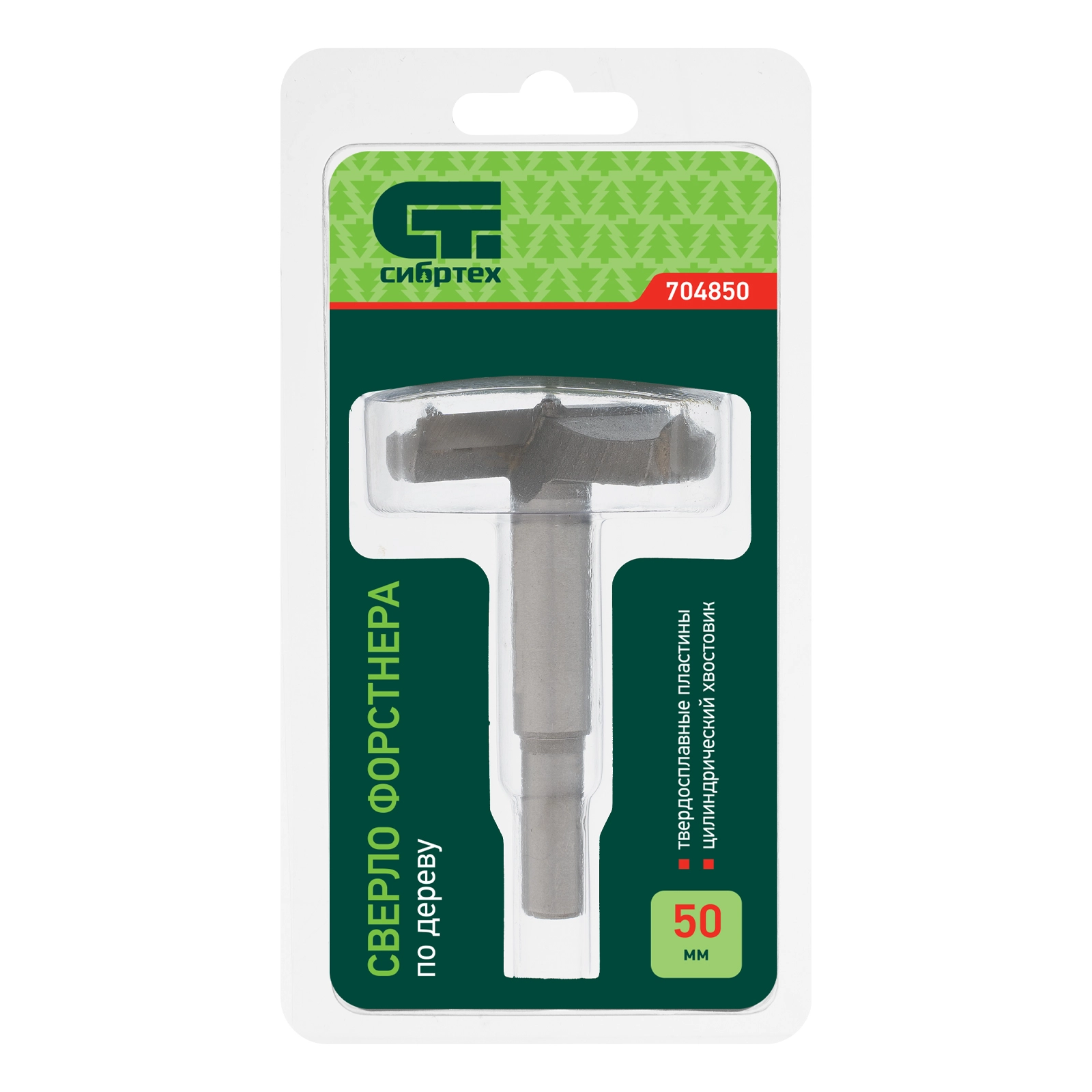Сверло Форстнера по дереву Сибртех 704850 с цилиндрическим хвостовиком, используется для получения глухих отверстий диаметром 50 мм в древесине, ДСП, ДВП и других материалах.