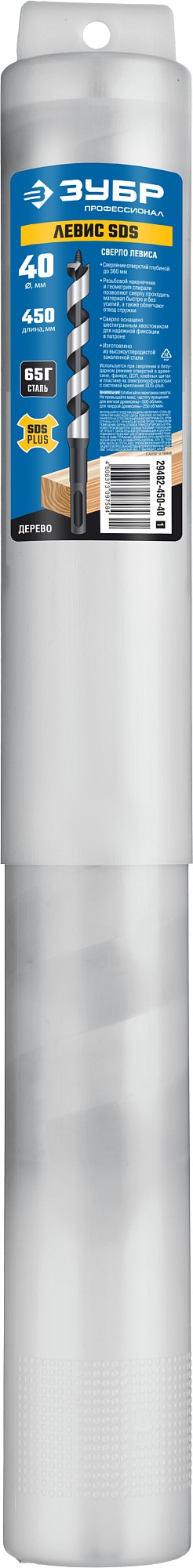 ПроизводителиСверло левиса по дереву 40х450/360мм, хвостовик SDS+, Профессионал (29482-450-40_z01) ЗУБР