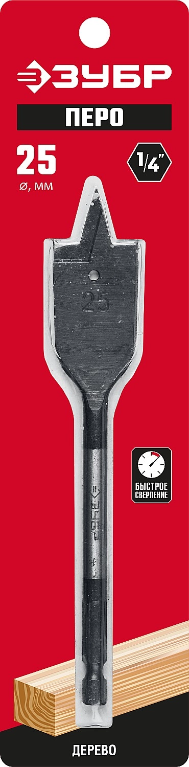 ПроизводителиСверло по дереву перьевое d=25мм, с боковыми подрезателями (29505-25_z01) ЗУБР