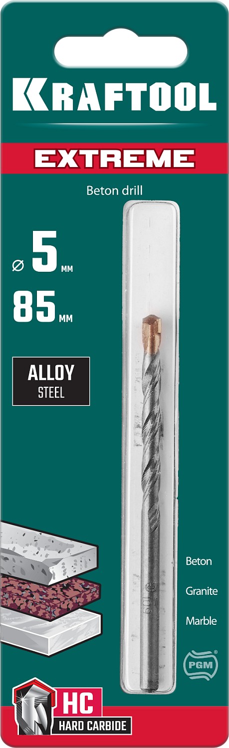 ПроизводителиСверло по бетону, цилиндр. хвостовик, Extreme, 5х85мм (29166-085-05) KRAFTOOL