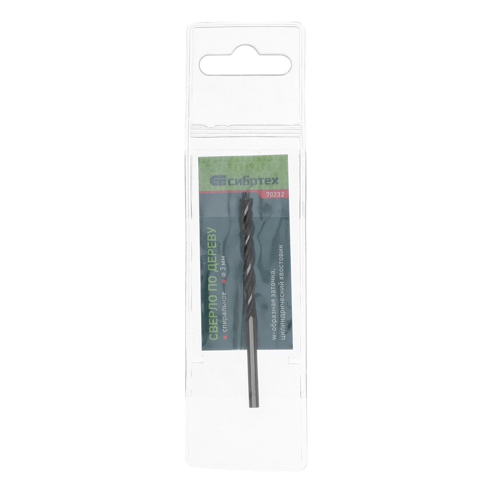 Сверло по дереву Сибртех 70232 диаметром 3 мм, с цилиндрическим хвостовиком, — режущий инструмент для получения отверстий в древесине.