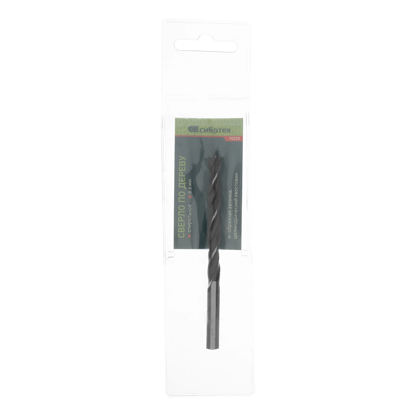Сверло по дереву Сибртех 70235 диаметром 6 мм, с цилиндрическим хвостовиком, — режущий инструмент для получения отверстий в древесине.