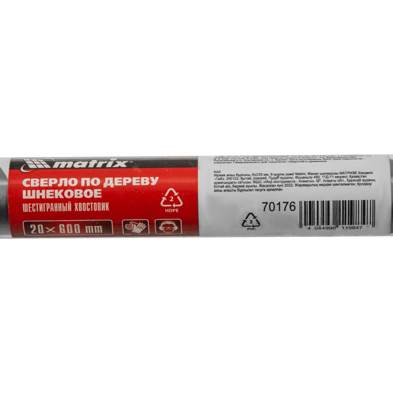 ПроизводителиСверло по дереву односпиральное 20х600мм, шестигр. хв. (70176) MATRIX