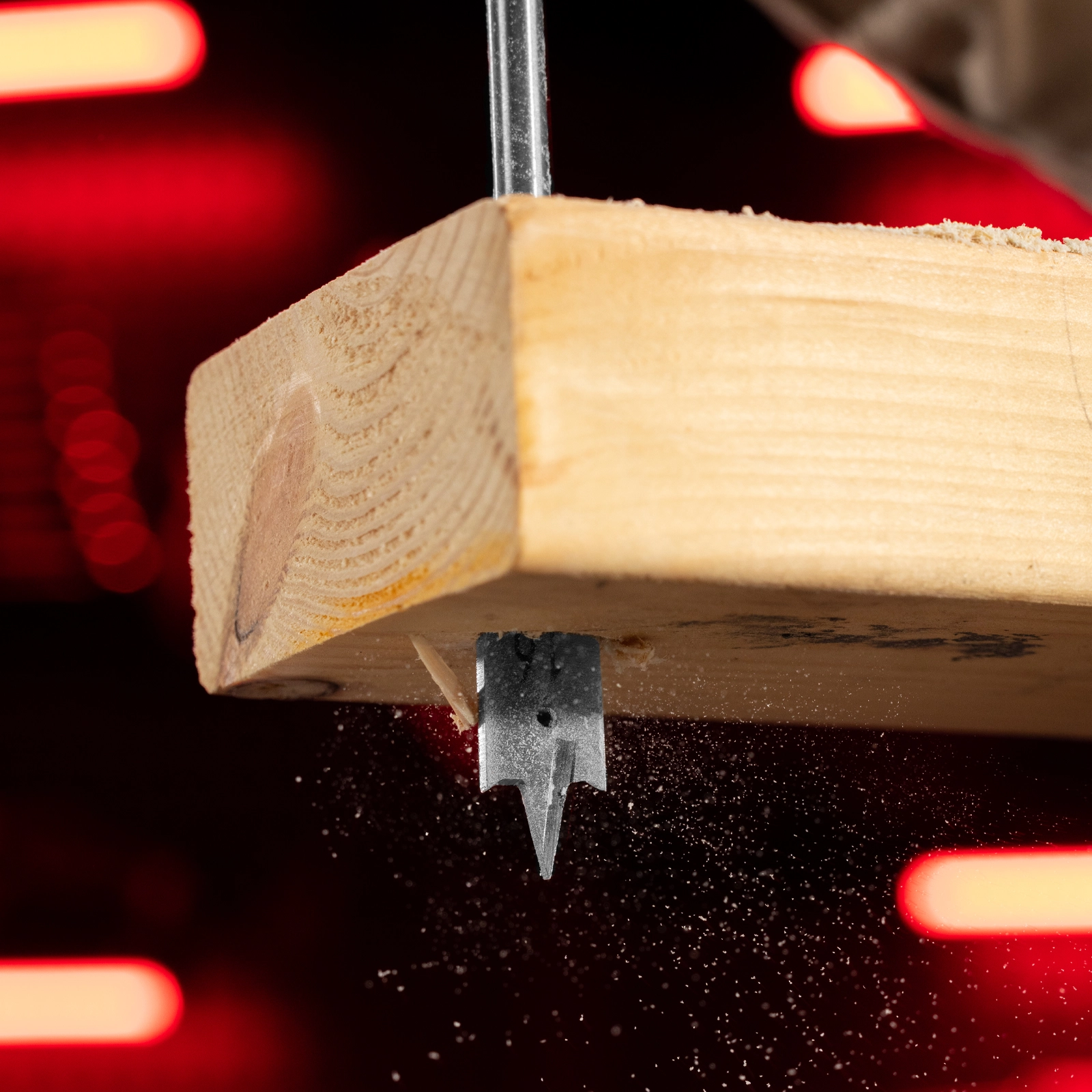 С помощью оснастки можно сверлить древесину любых пород.