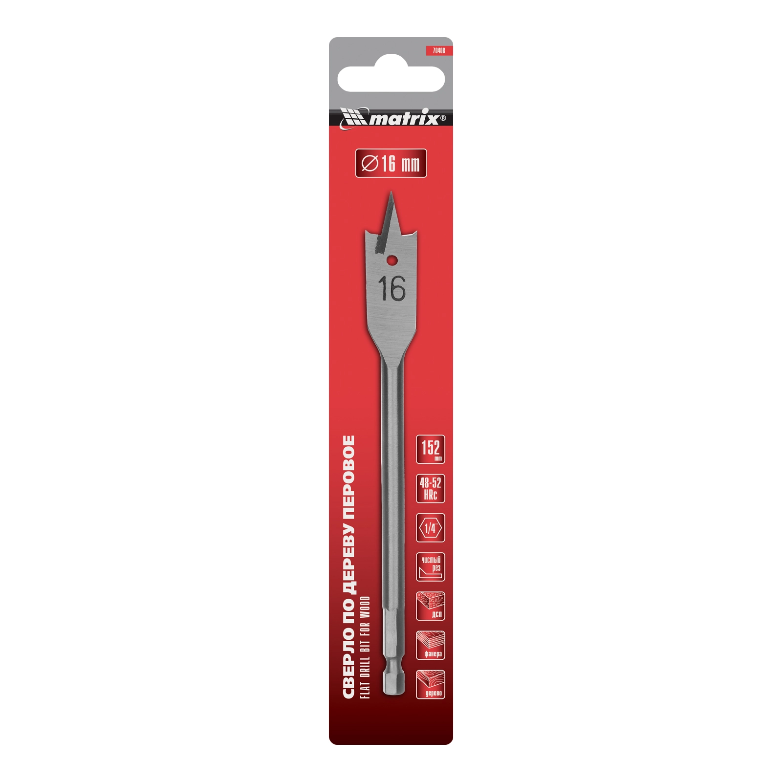 ПроизводителиСверло по дереву перовое, 16 мм, 6-гр. хвостовик (70408) MATRIX