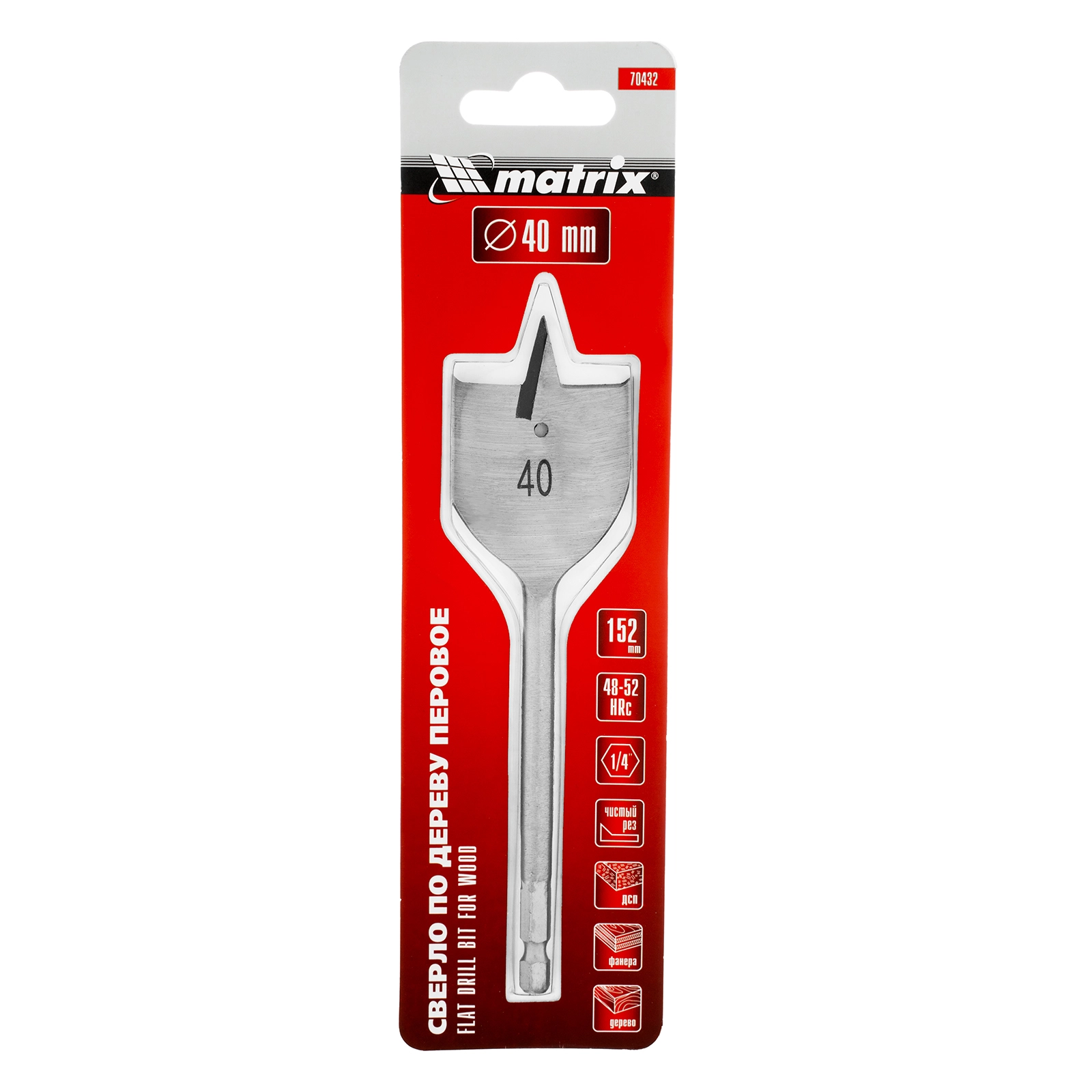 ПроизводителиСверло по дереву перовое, 40 мм, 6-гр. хвостовик (70432) MATRIX