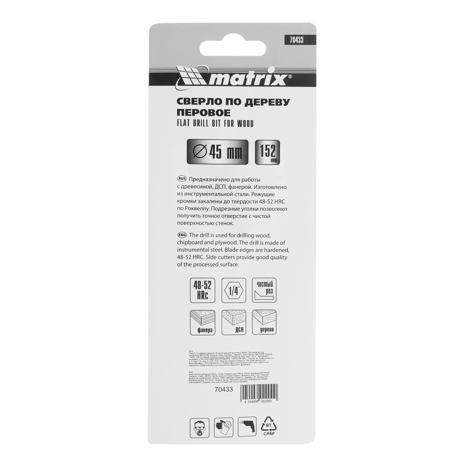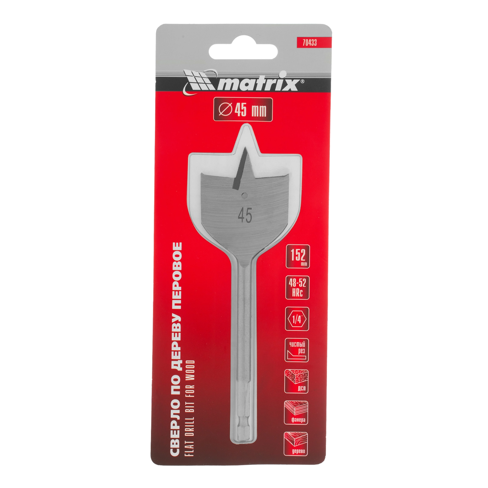 ПроизводителиСверло по дереву перовое, 45 мм, 6-гр. хвостовик (70433) MATRIX