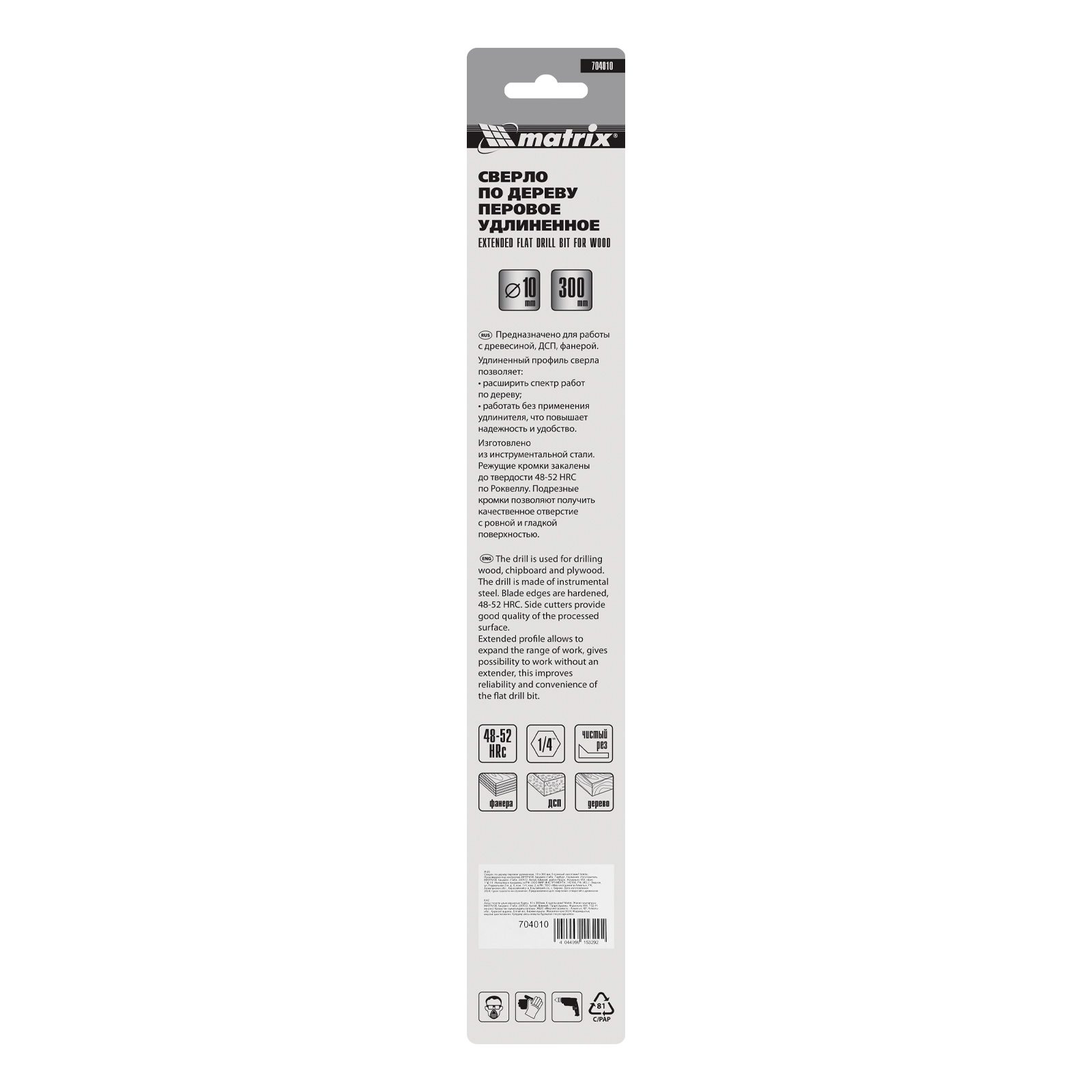 ПроизводителиСверло по дереву перовое удлиненное, 10 х 300 мм, 6-гр. хвостовик (704010) MATRIX