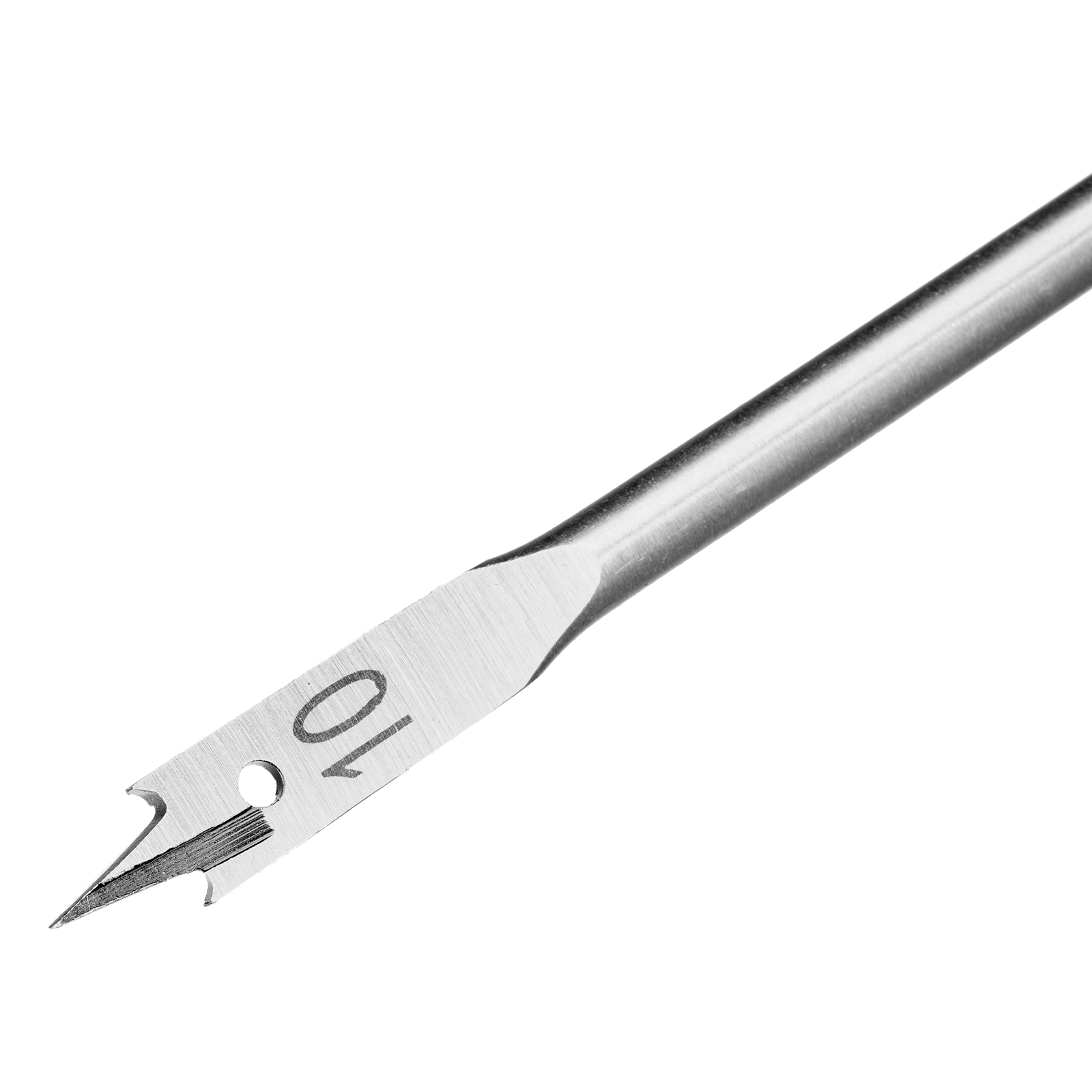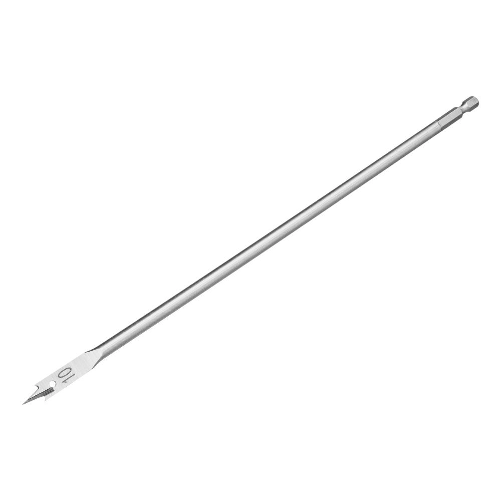 Удлиненное перовое сверло по дереву Matrix 704010 диаметром 10 мм, с 6-гранным хвостовиком, за счет длины 300 мм позволяет получать глубокие отверстия без необходимости использования удлинителя.