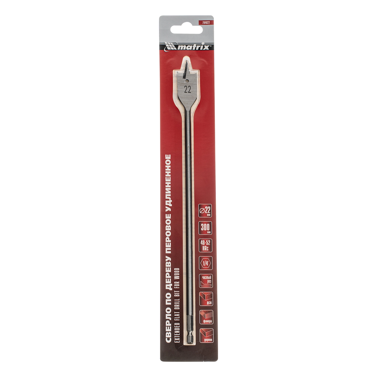 ПроизводителиСверло по дереву перовое удлиненное, 22 х 300 мм, 6-гр. хвостовик (704022) MATRIX