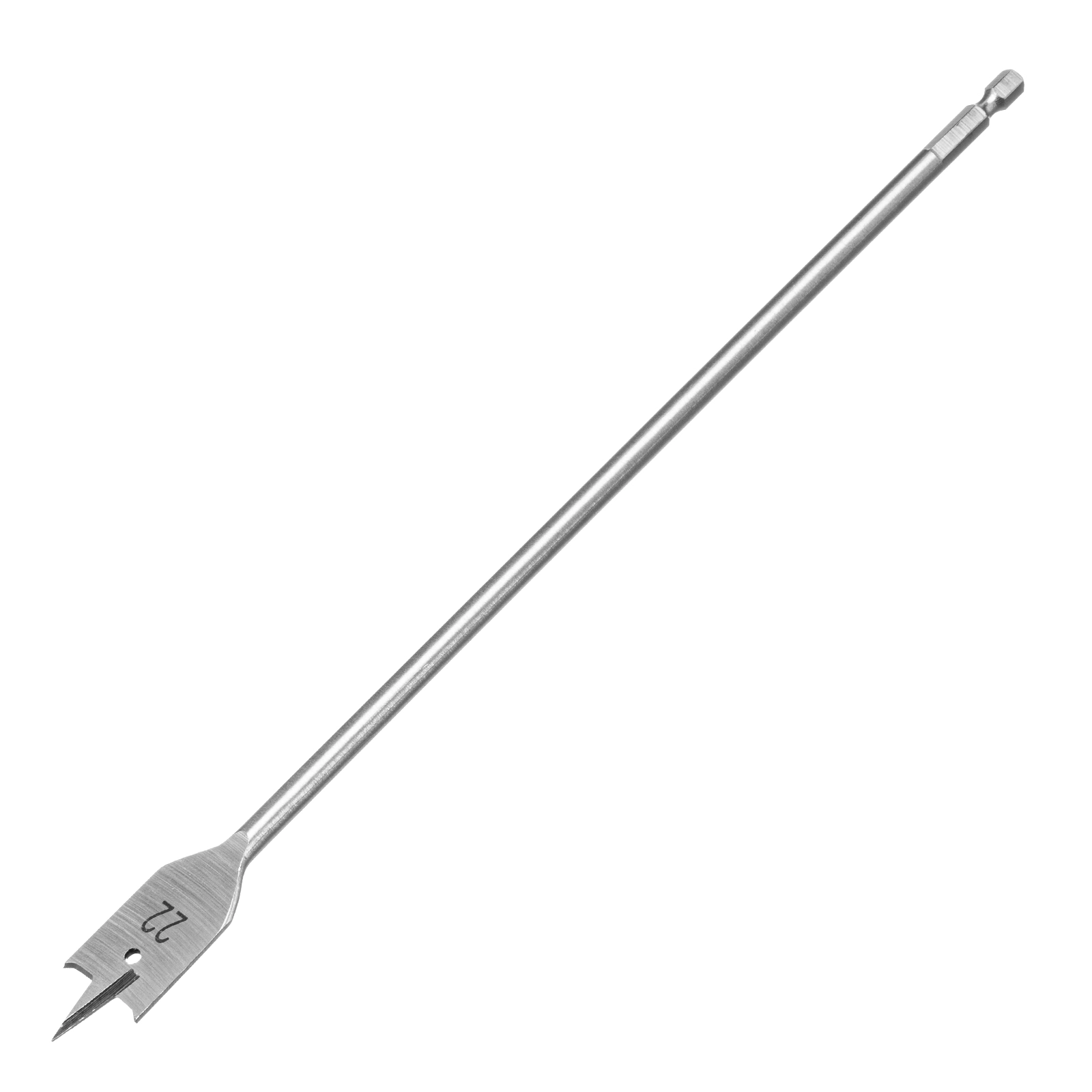 Удлиненное перовое сверло по дереву Matrix 704022 диаметром 22 мм, с 6-гранным хвостовиком, за счет длины 300 мм позволяет получать глубокие отверстия без необходимости использования удлинителя.