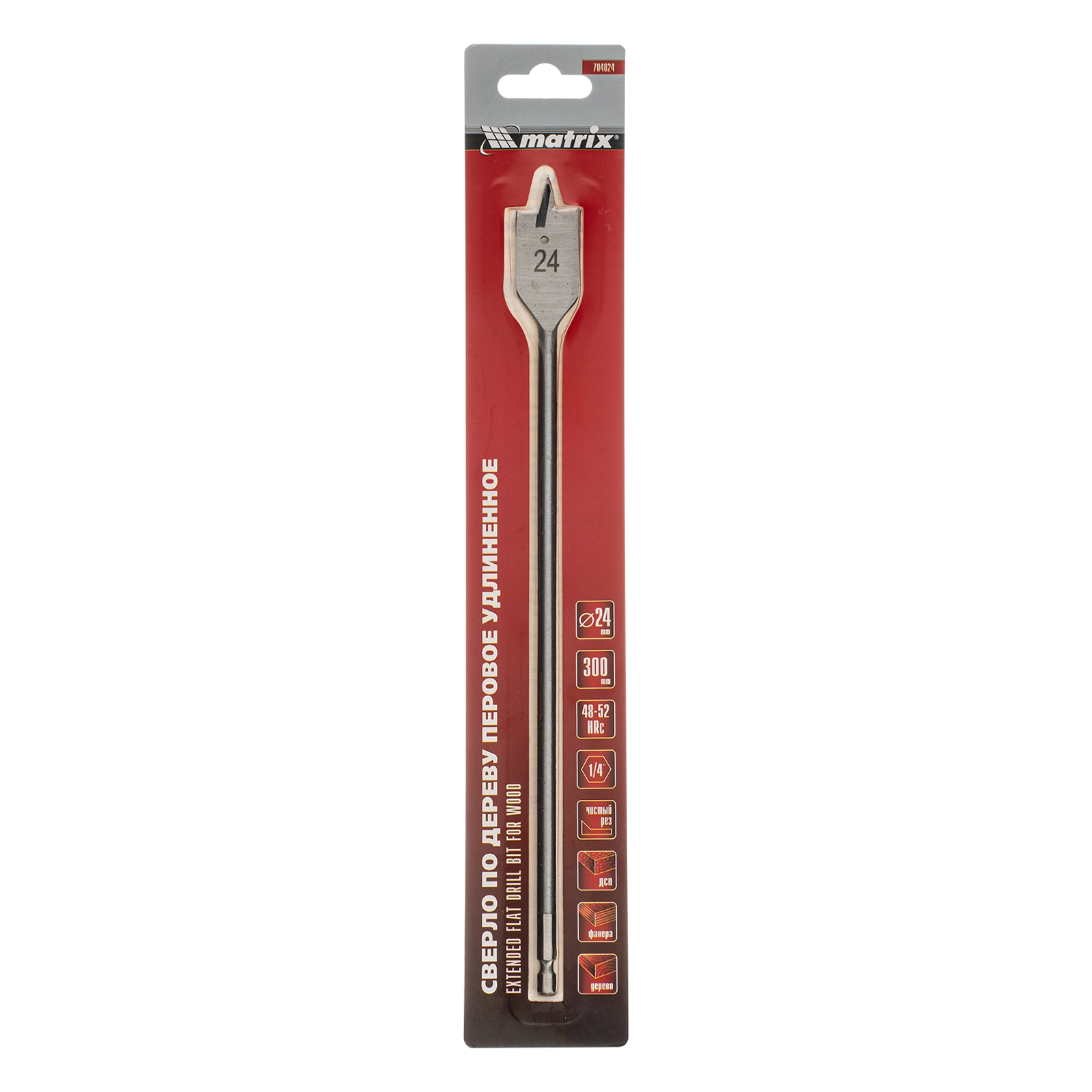 ПроизводителиСверло по дереву перовое удлиненное, 24 х 300 мм, 6-гр. хвостовик (704024) MATRIX