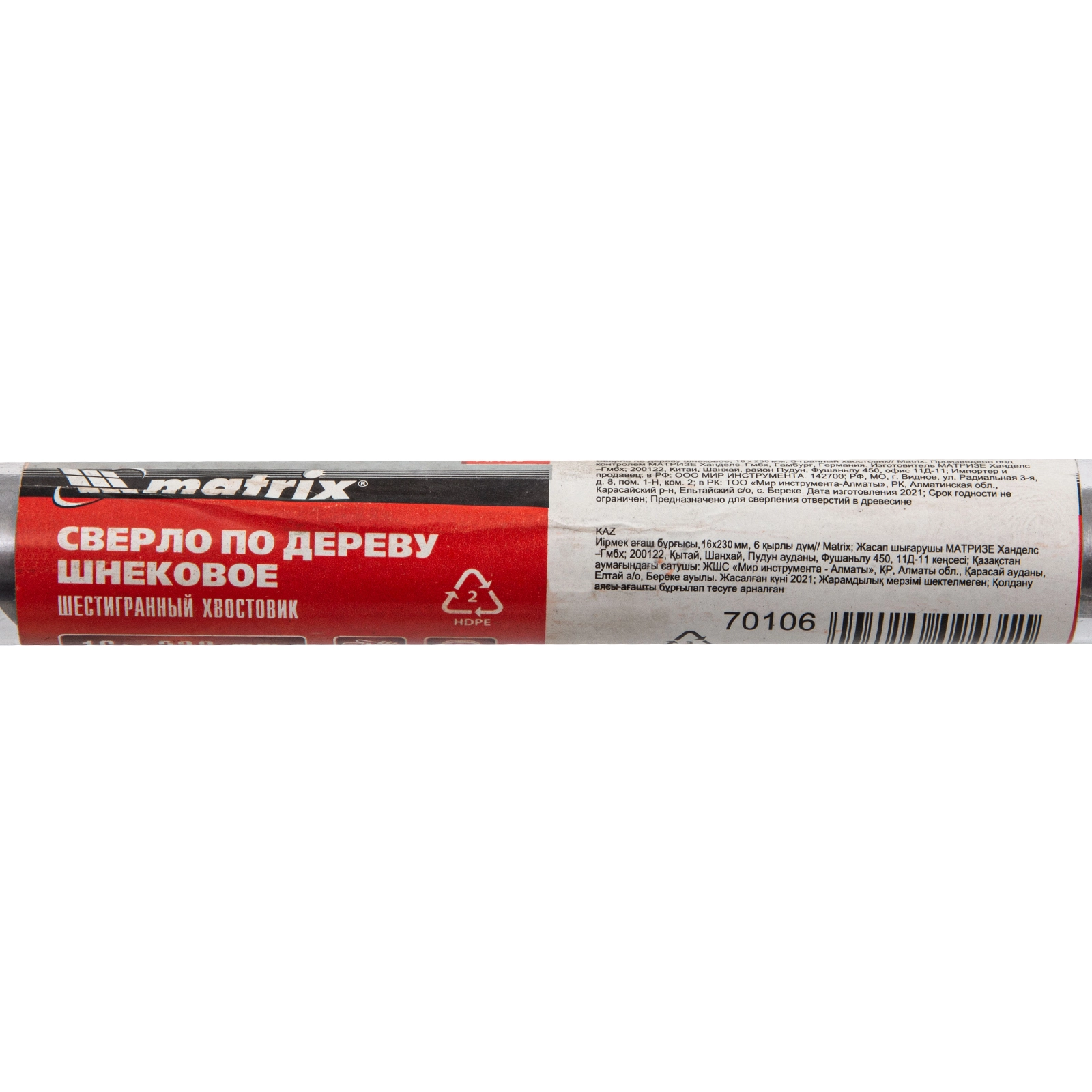 ПроизводителиСверло по дереву шнековое, 16 х 230 мм, 6-гр. хвостовик (70106) MATRIX