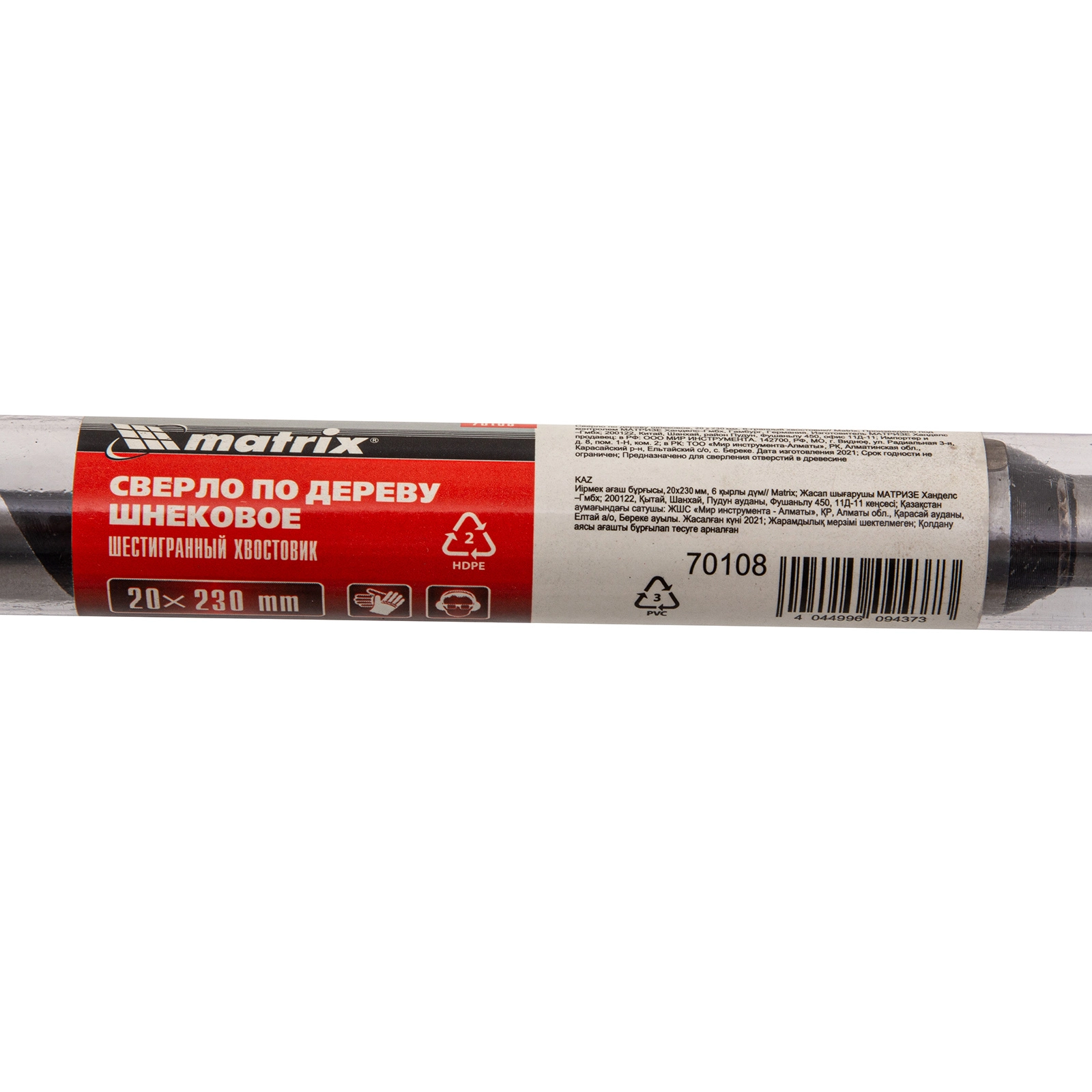 ПроизводителиСверло по дереву шнековое, 20 х 230 мм, 6-гр. хвостовик (70108) MATRIX
